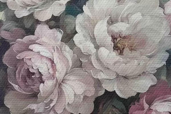 Attēls Rozā un balto peoniju pušķis uz eļļas gleznas Nr r40582