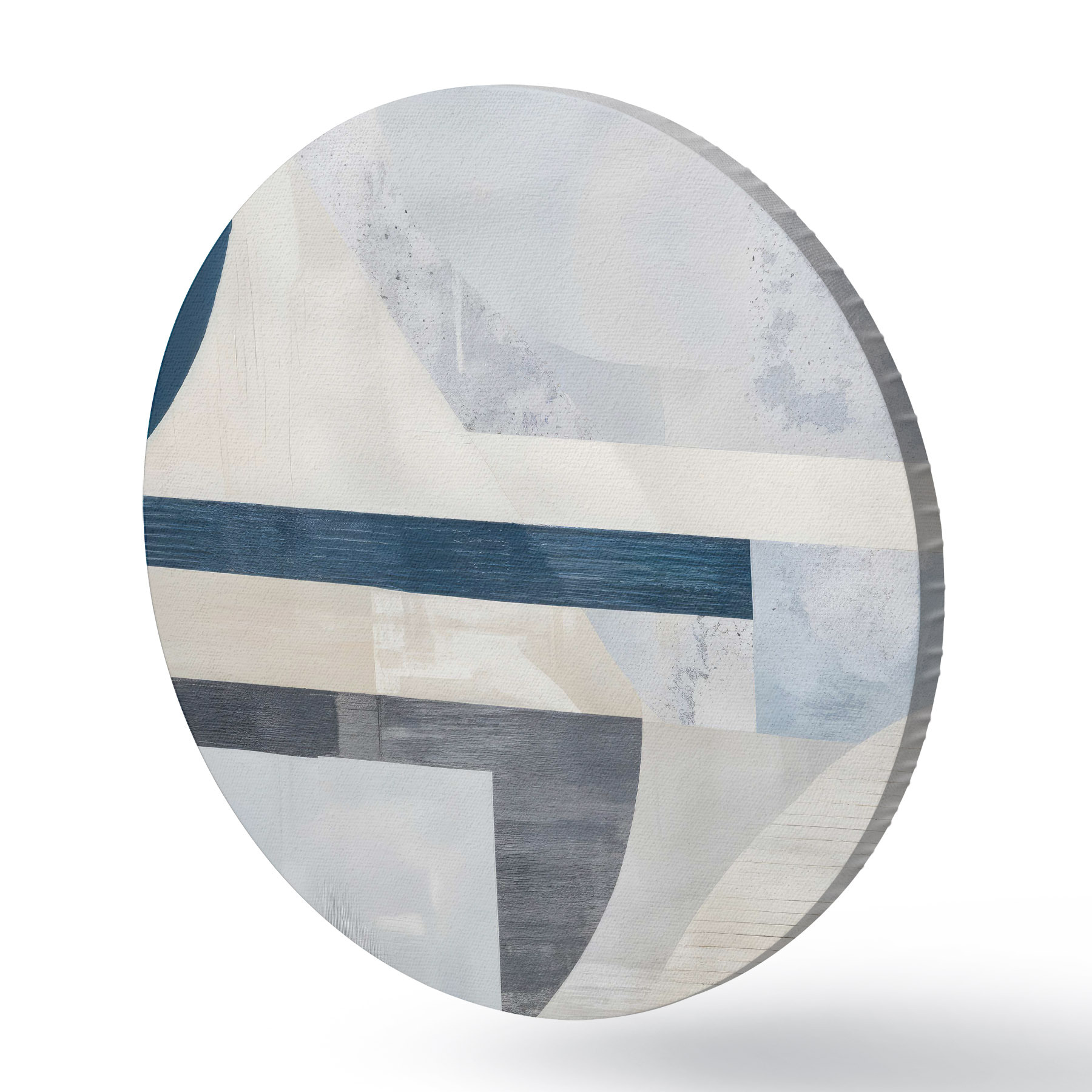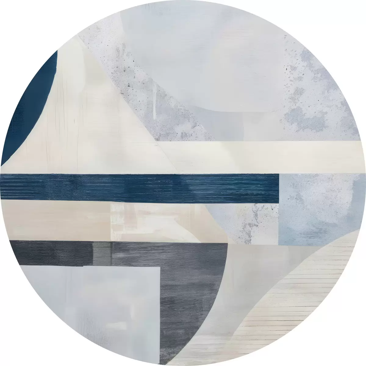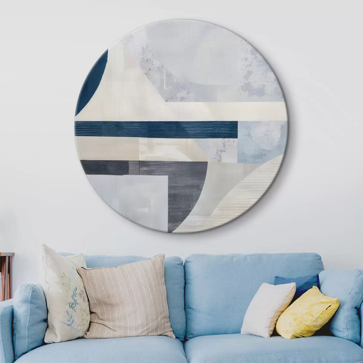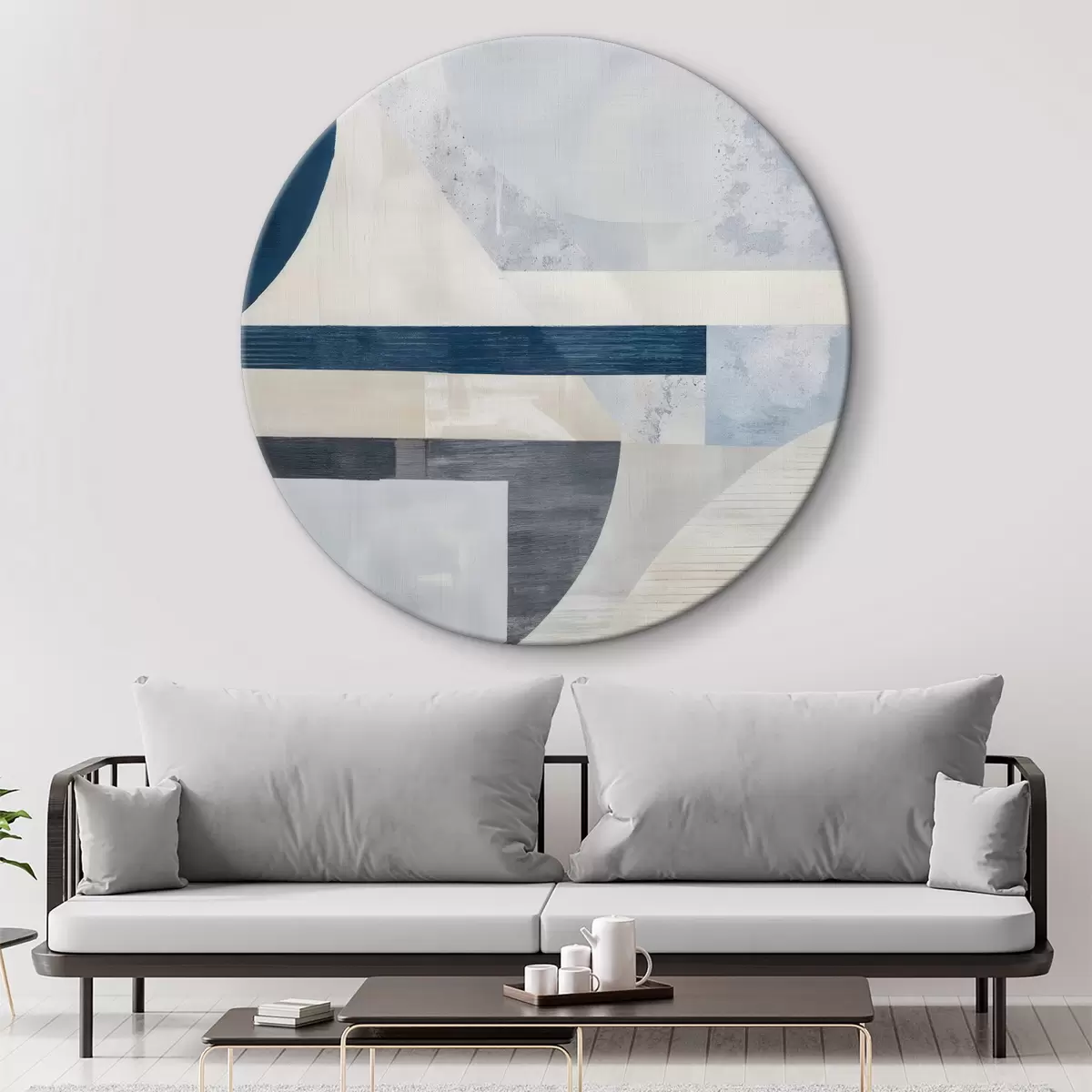 Apaļas gleznas Minimālistiska abstrakcija ar ģeometriskām formām un faktūrām zilos, pelēkos un baltos toņos r40596
