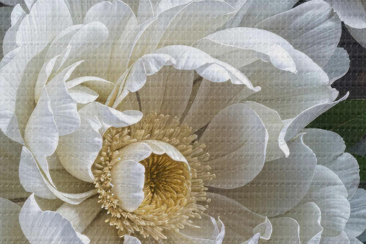 Smalkais diegu pinums uz šī audekla atgādina profesionālu mākslinieku audeklu virsmu.