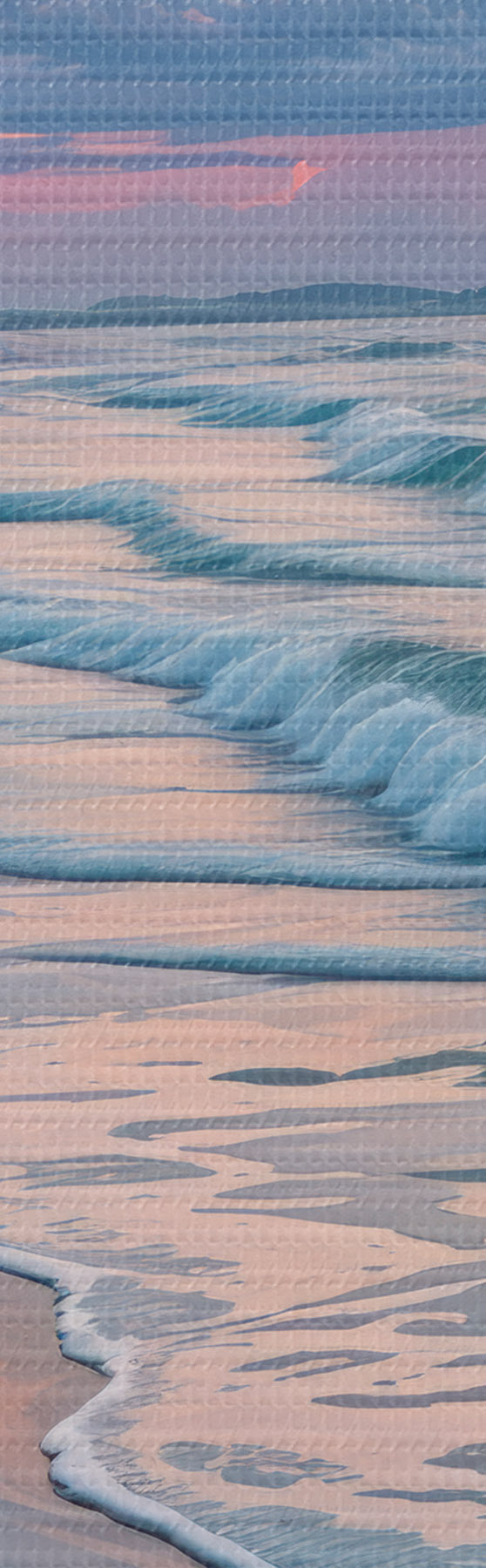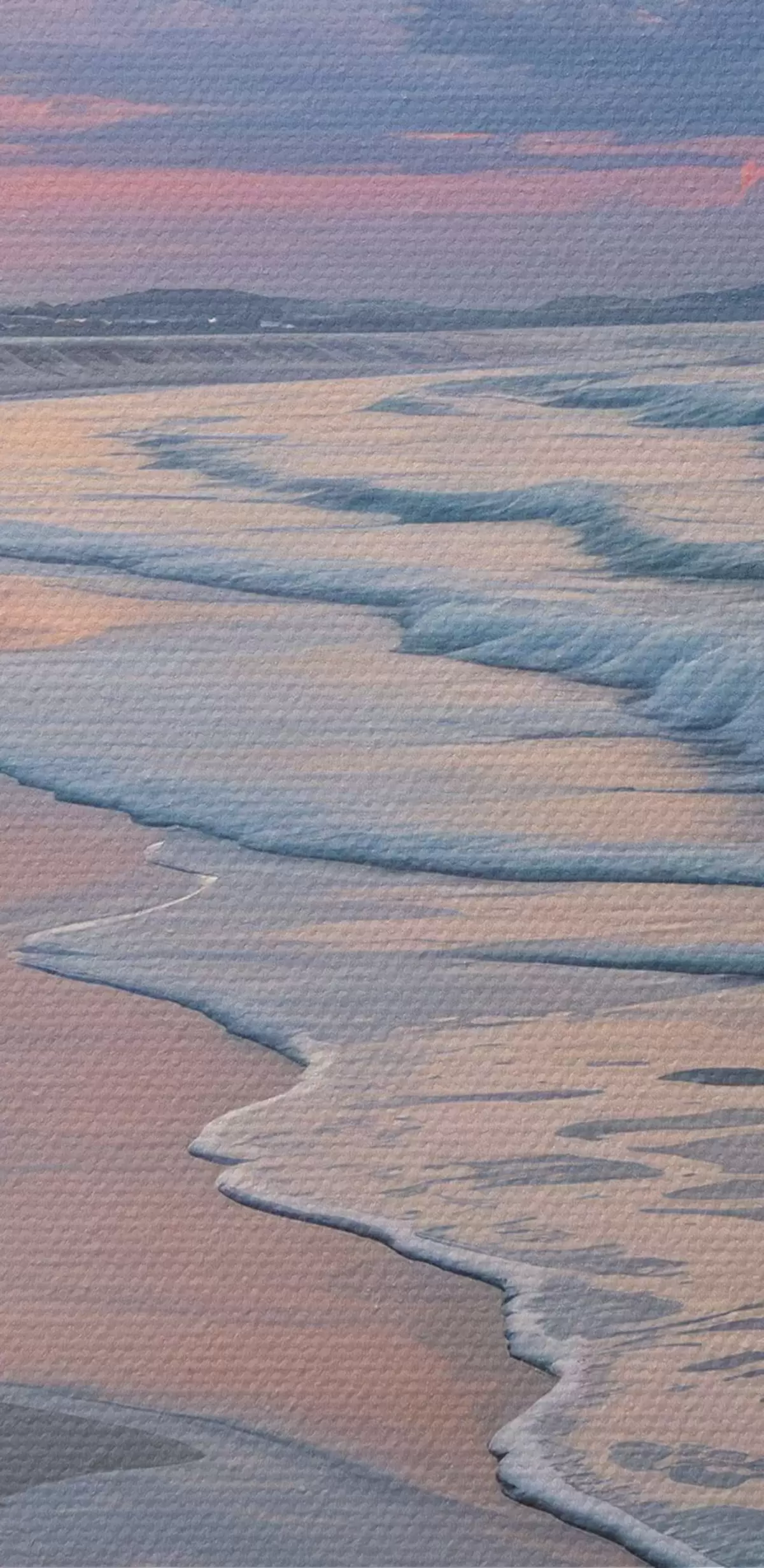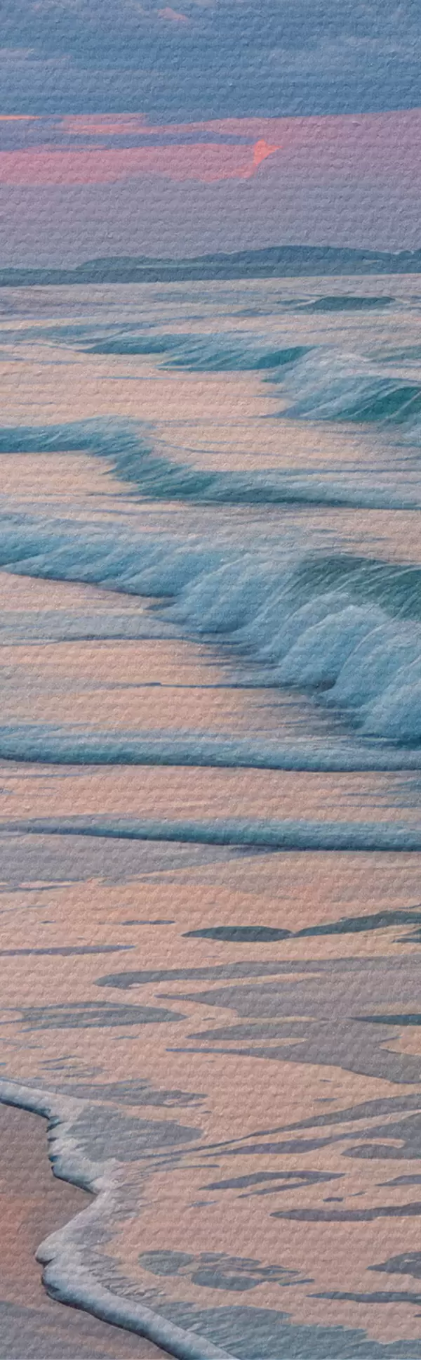 Apaļas gleznas Klusa aina pludmalē saulrieta laikā, kad smilšaino krastu skalo maigi viļņi r40606
