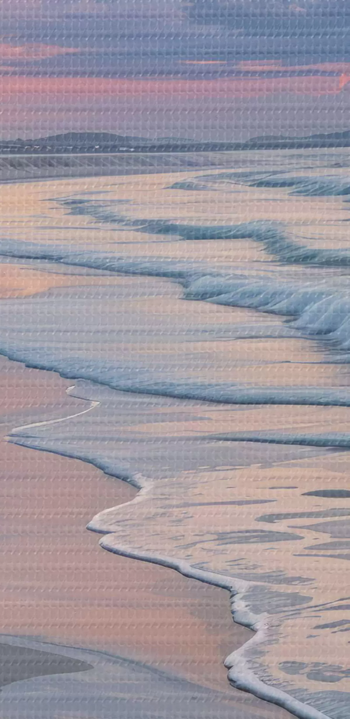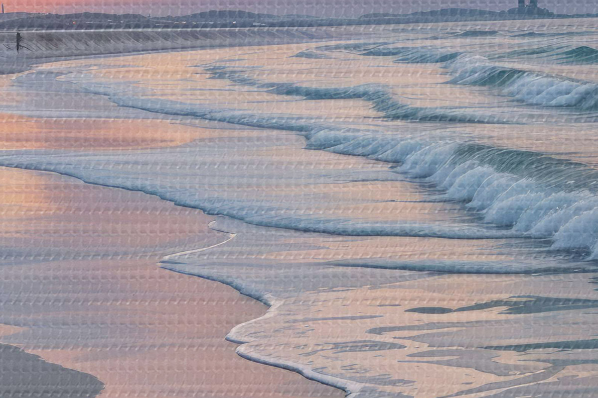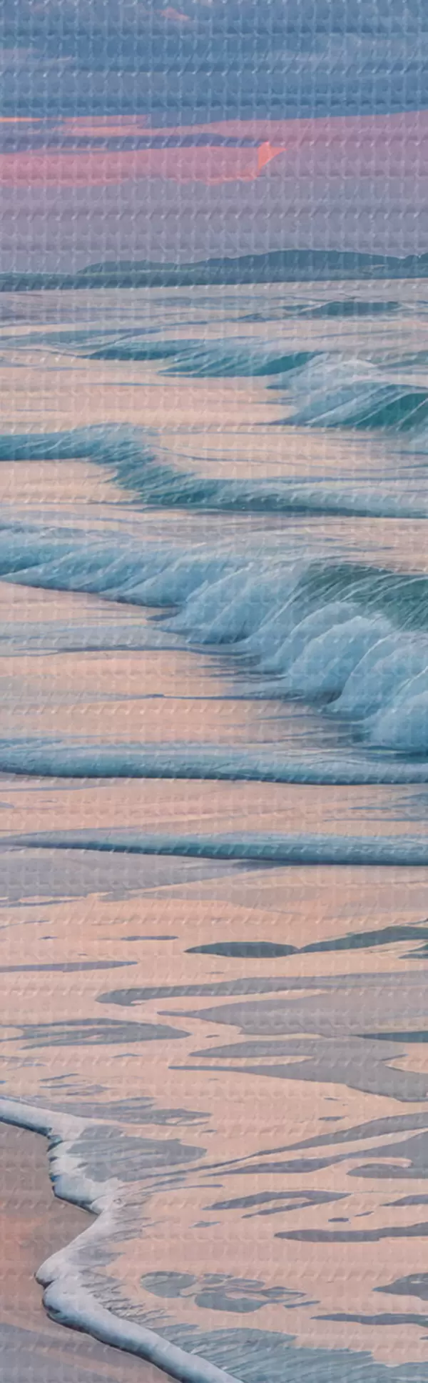 Attēls Klusa aina pludmalē saulrieta laikā, kad smilšaino krastu skalo maigi viļņi Nr r40606