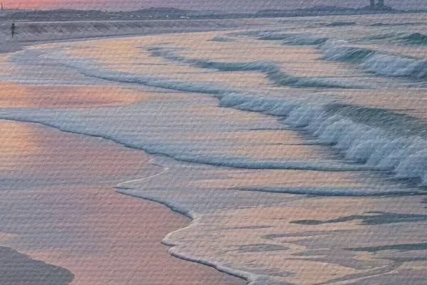Attēls Klusa aina pludmalē saulrieta laikā, kad smilšaino krastu skalo maigi viļņi Nr r40606