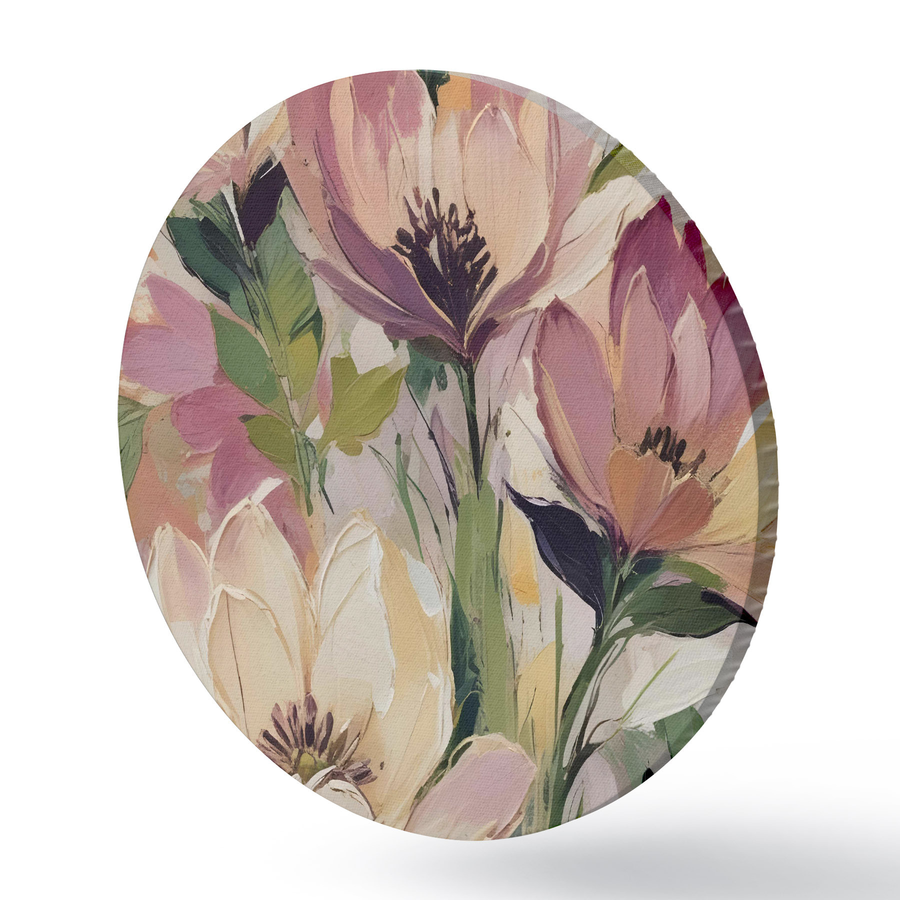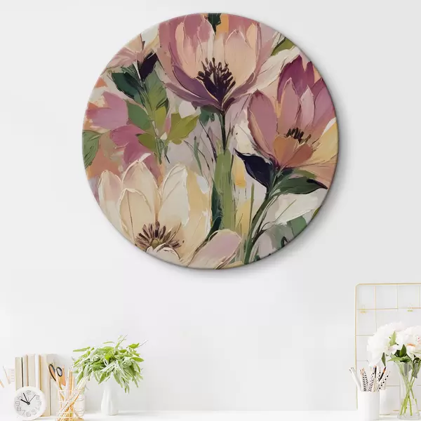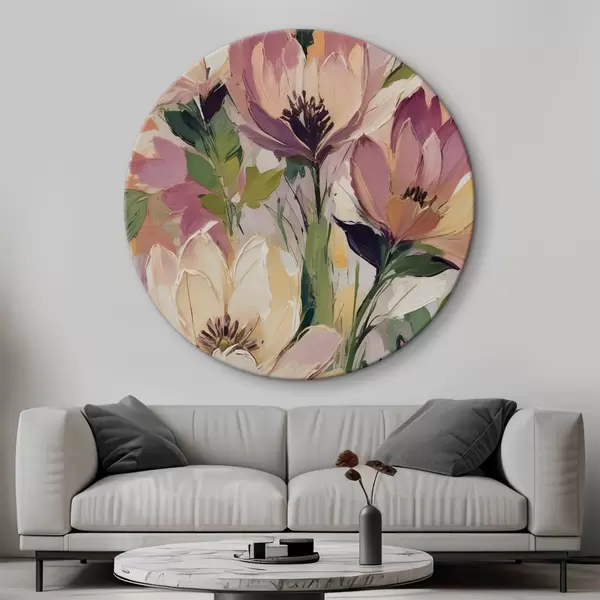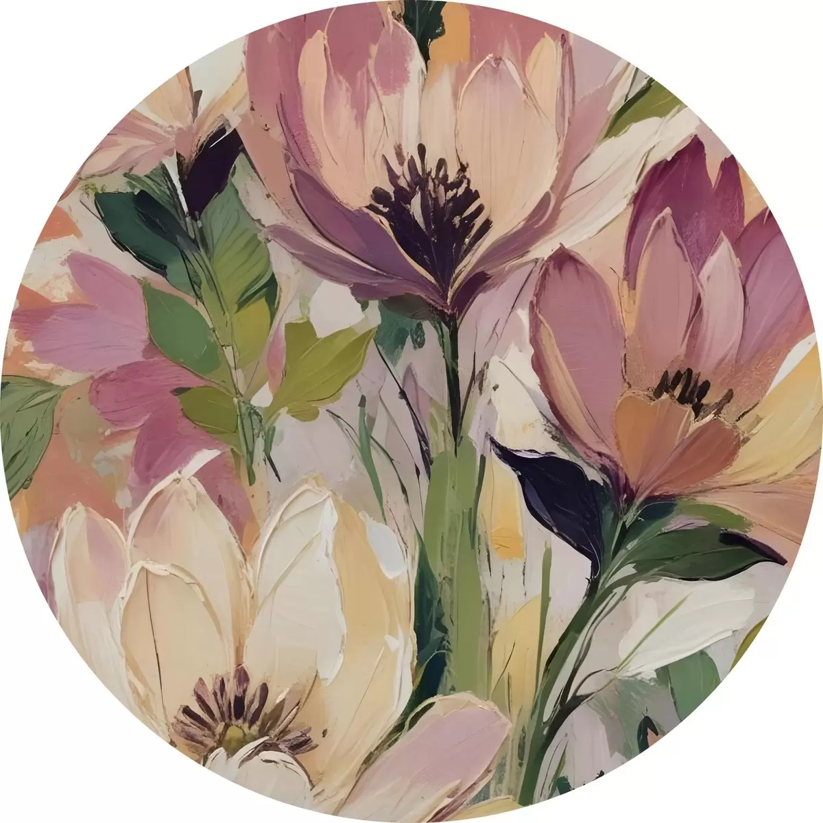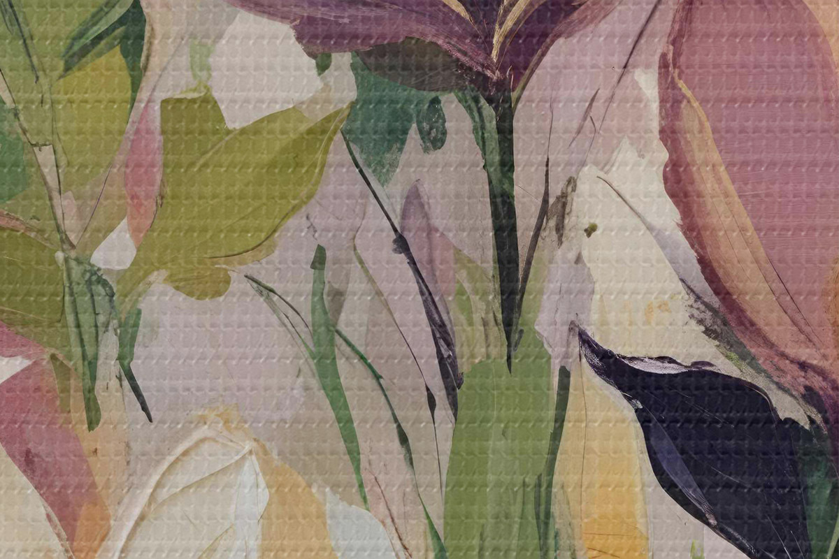 Attēls Spilgta ziedu kompozīcija ar lieliem, krāsainiem ziediem rozā, persiku un dzeltenos toņos Nr r40609