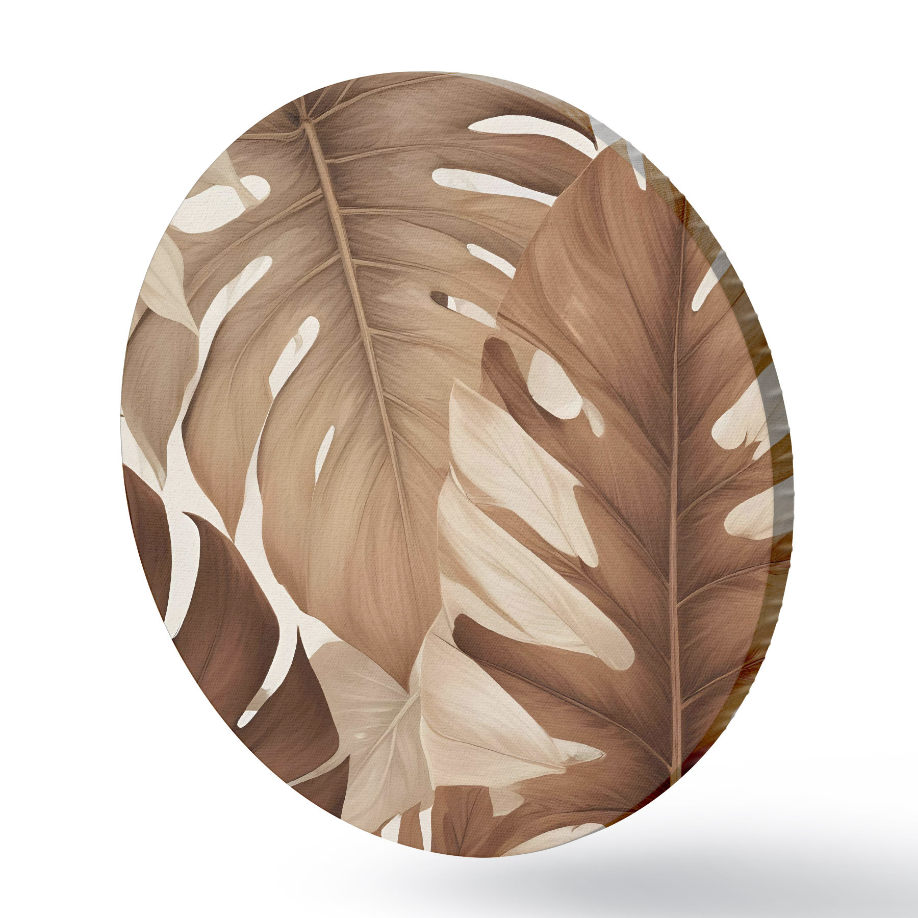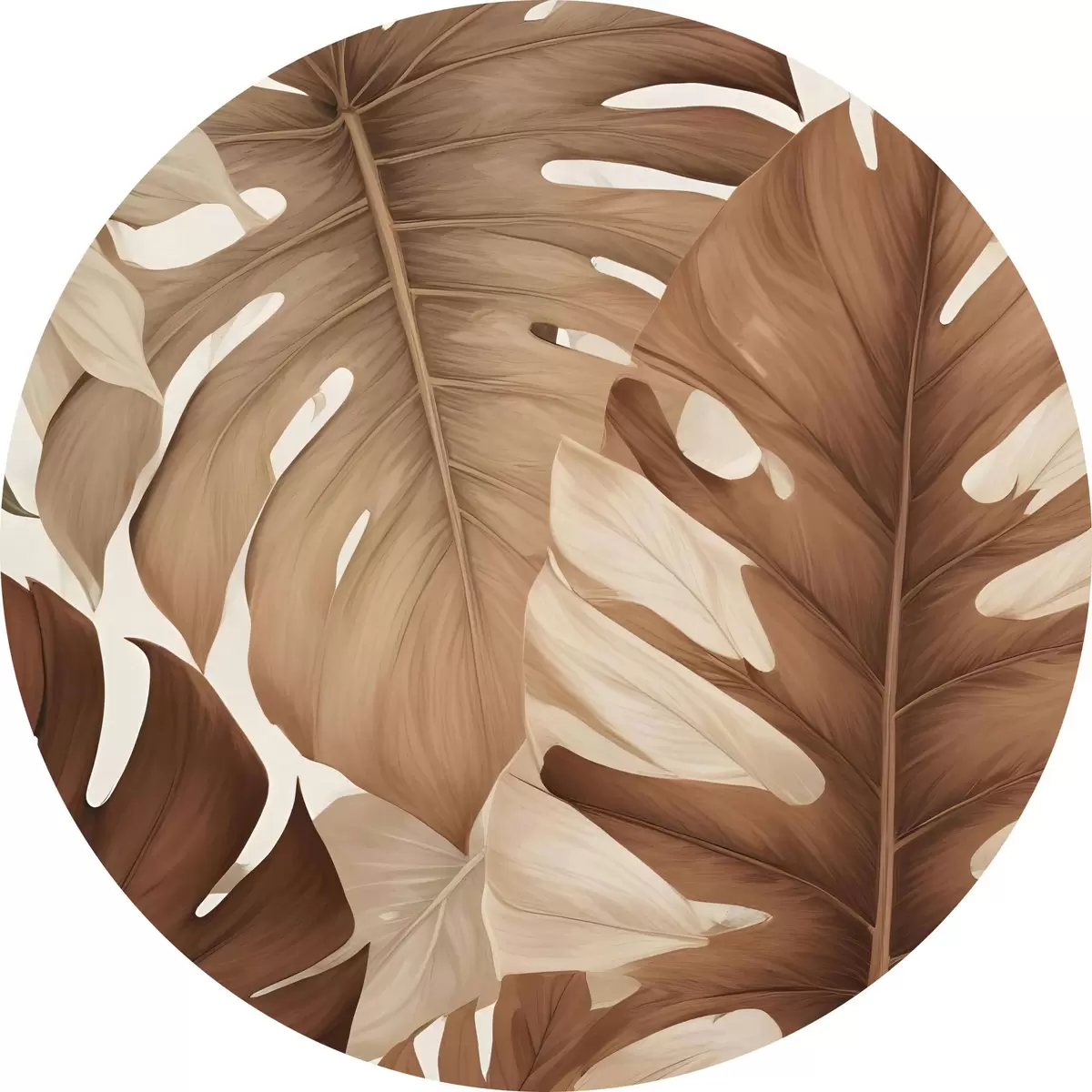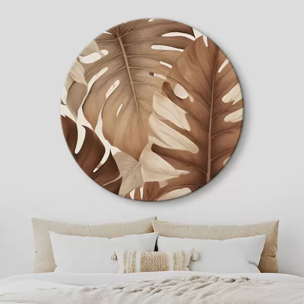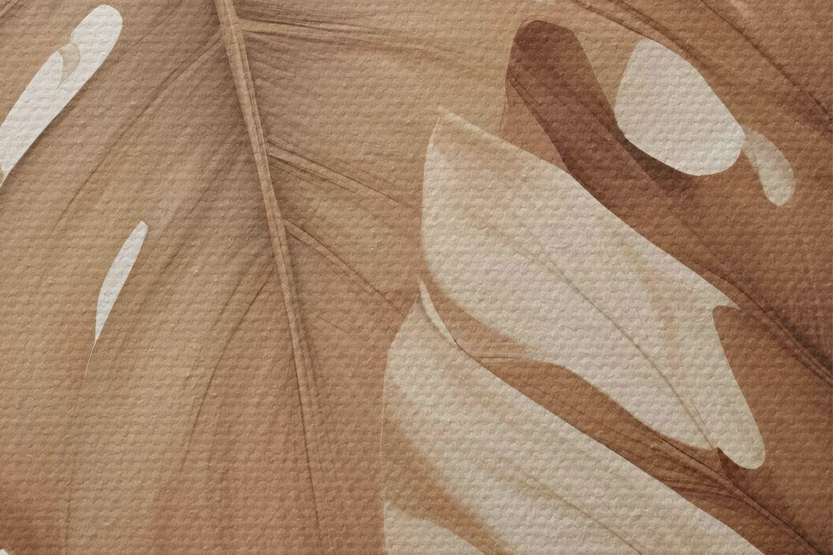 Attēls Tropu lapu apdruka ar dabisku, organisku tekstūru brūnā un smilškrāsas tonī Nr r40613