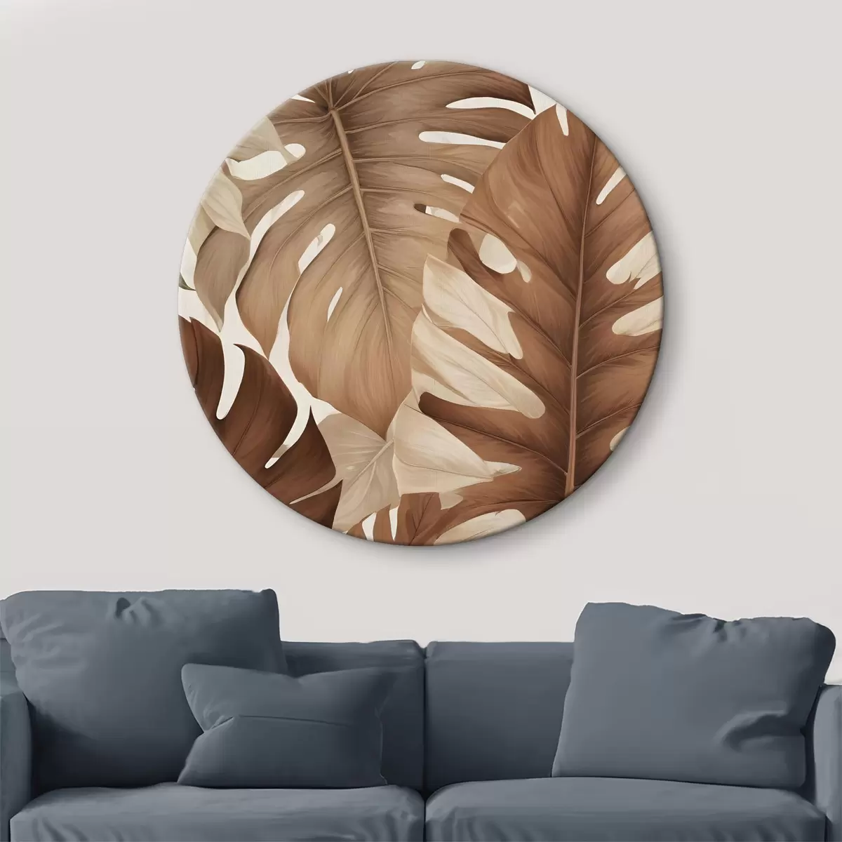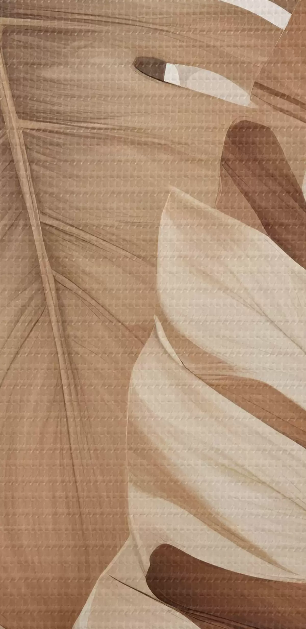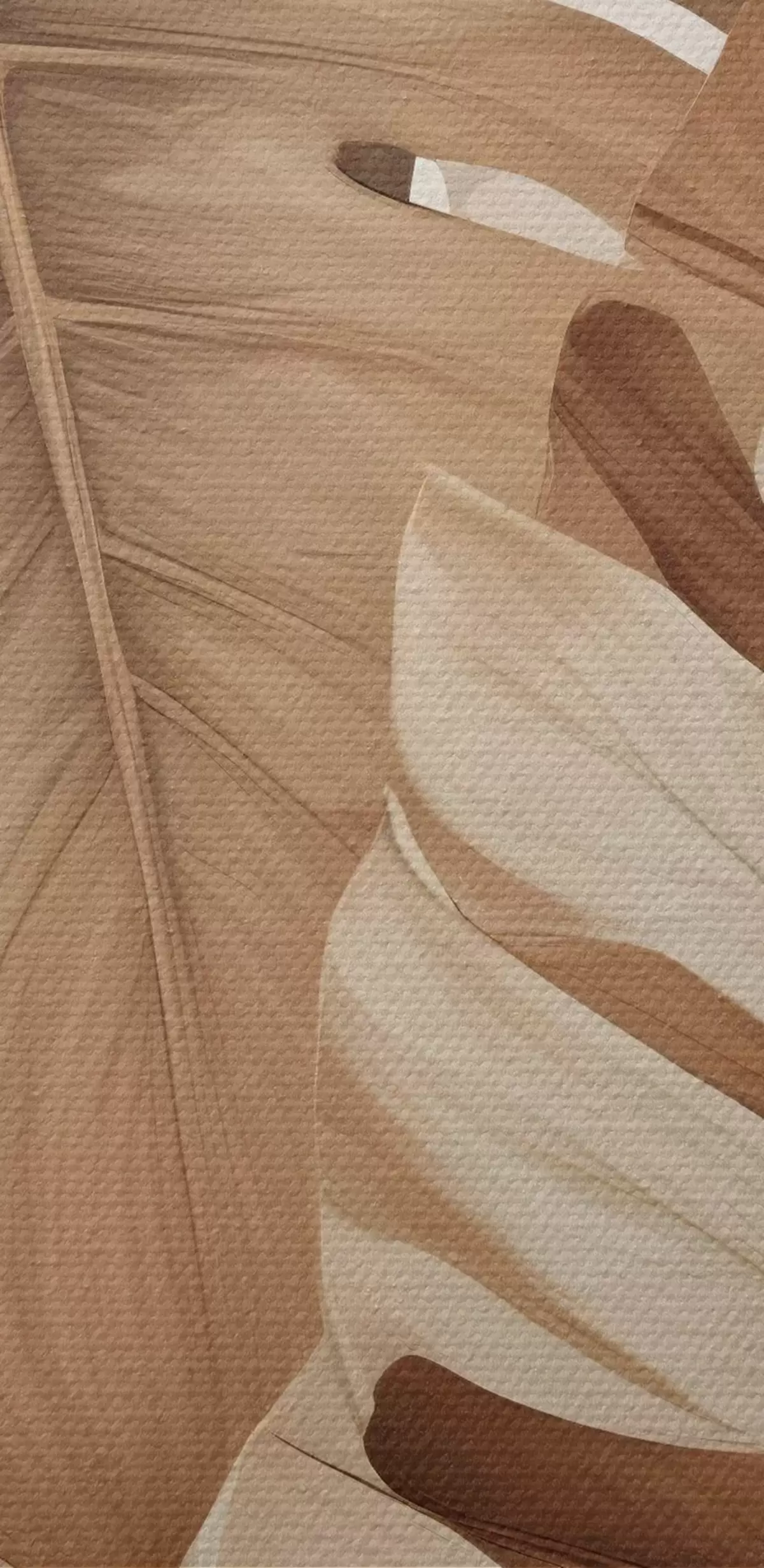 Attēls Tropu lapu apdruka ar dabisku, organisku tekstūru brūnā un smilškrāsas tonī Nr r40613