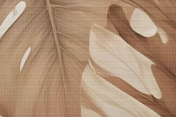 Attēls Tropu lapu apdruka ar dabisku, organisku tekstūru brūnā un smilškrāsas tonī Nr r40613