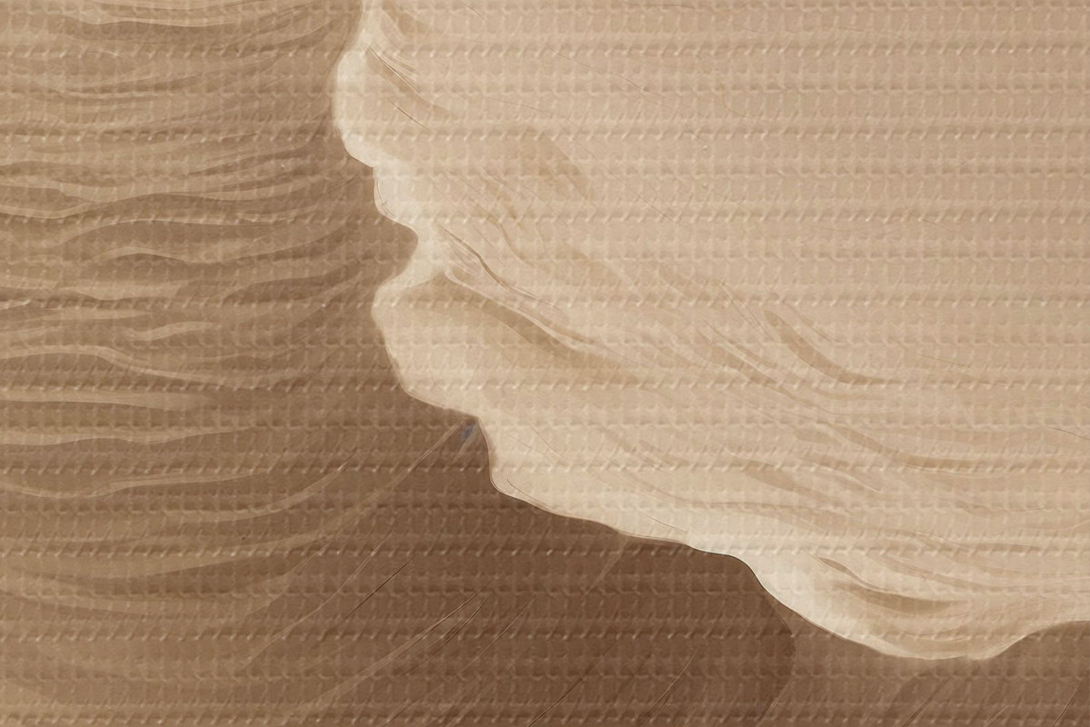 Smalkais diegu pinums uz šī audekla atgādina profesionālu mākslinieku audeklu virsmu.