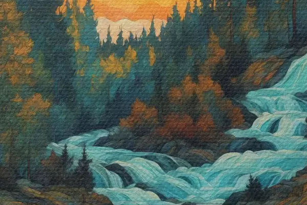 Attēls Egļu mežs un daudzkrāsainas debesis Nr r40639