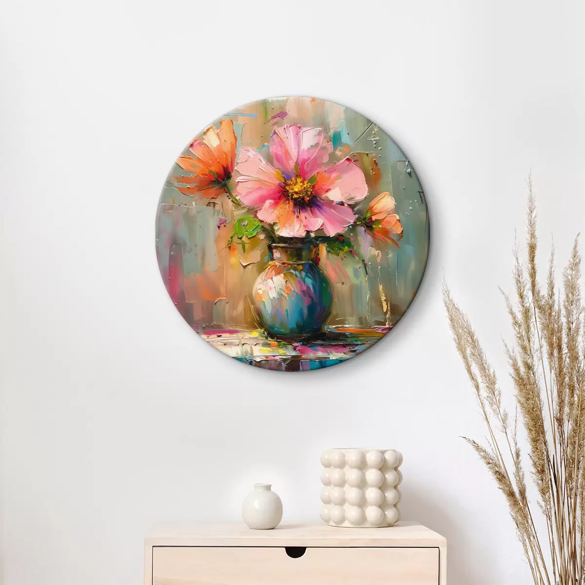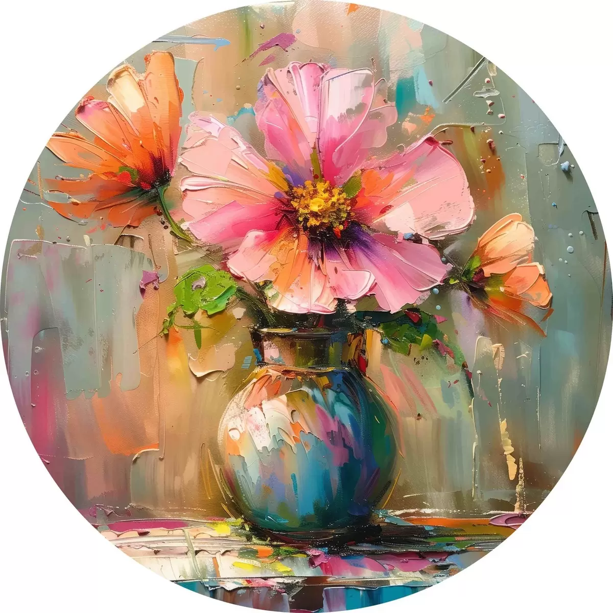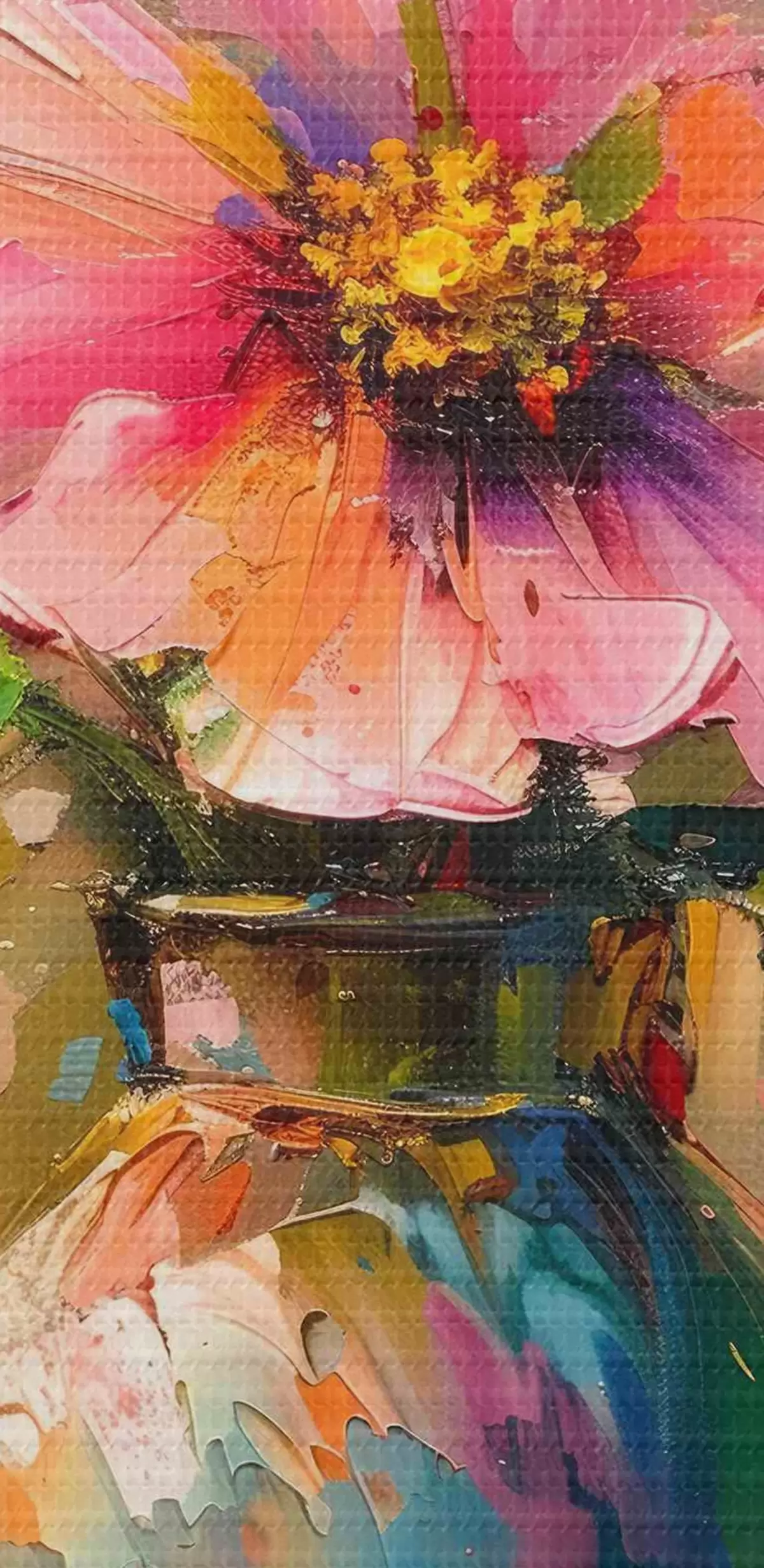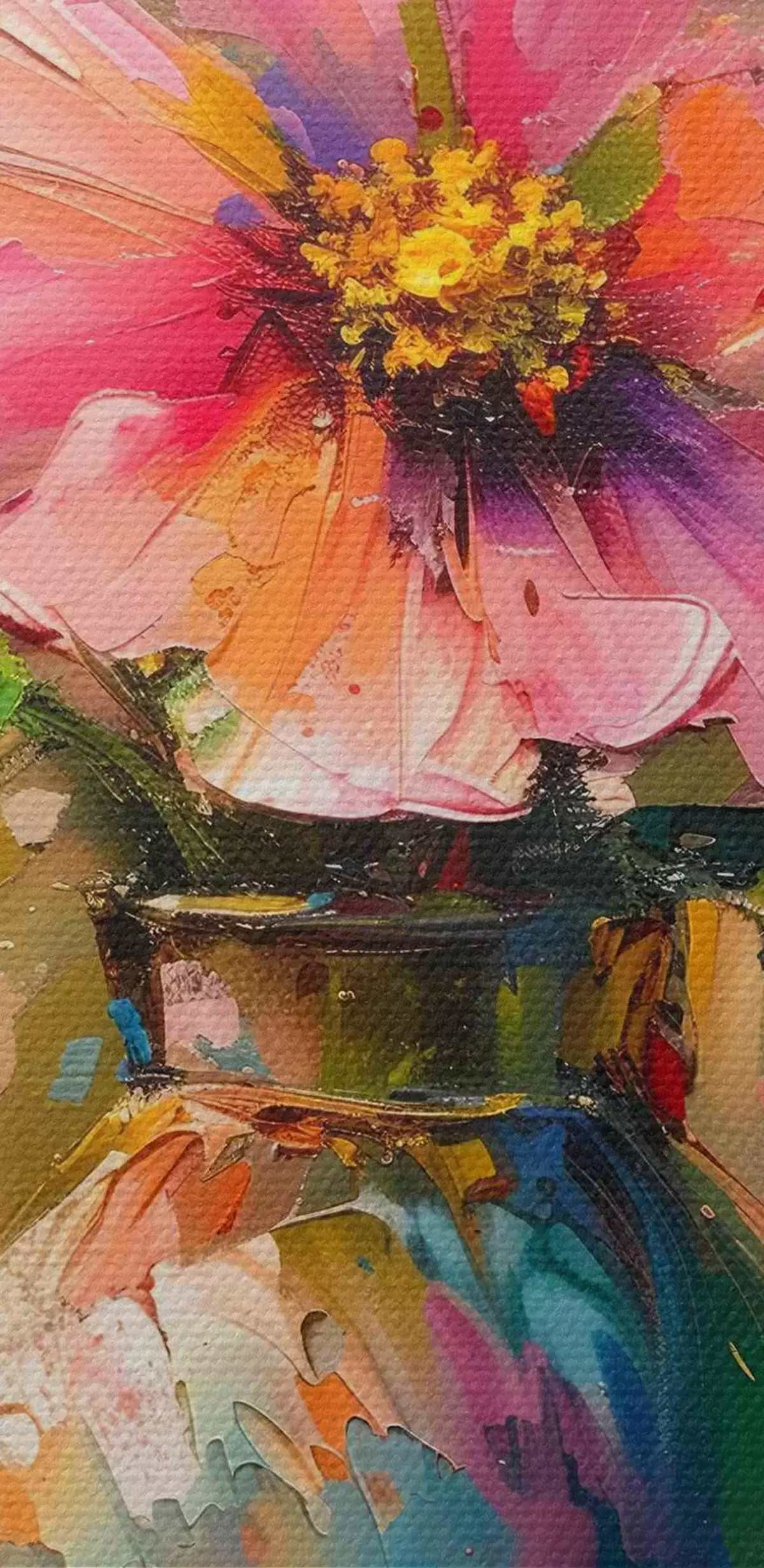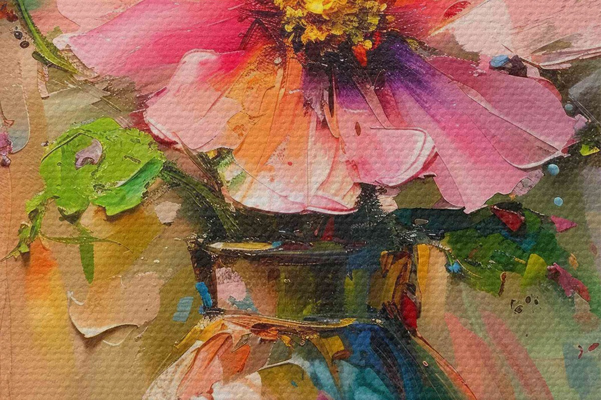 Attēls Krāsains zieds vāzē ar lieliem eļļas krāsas triepieniem Nr r40664