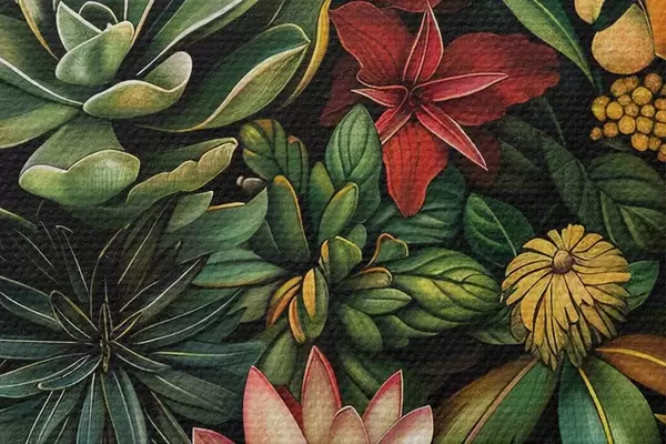 Attēls Sulīgs dārzs ar sukulentiem un tropu ziediem Nr r40666