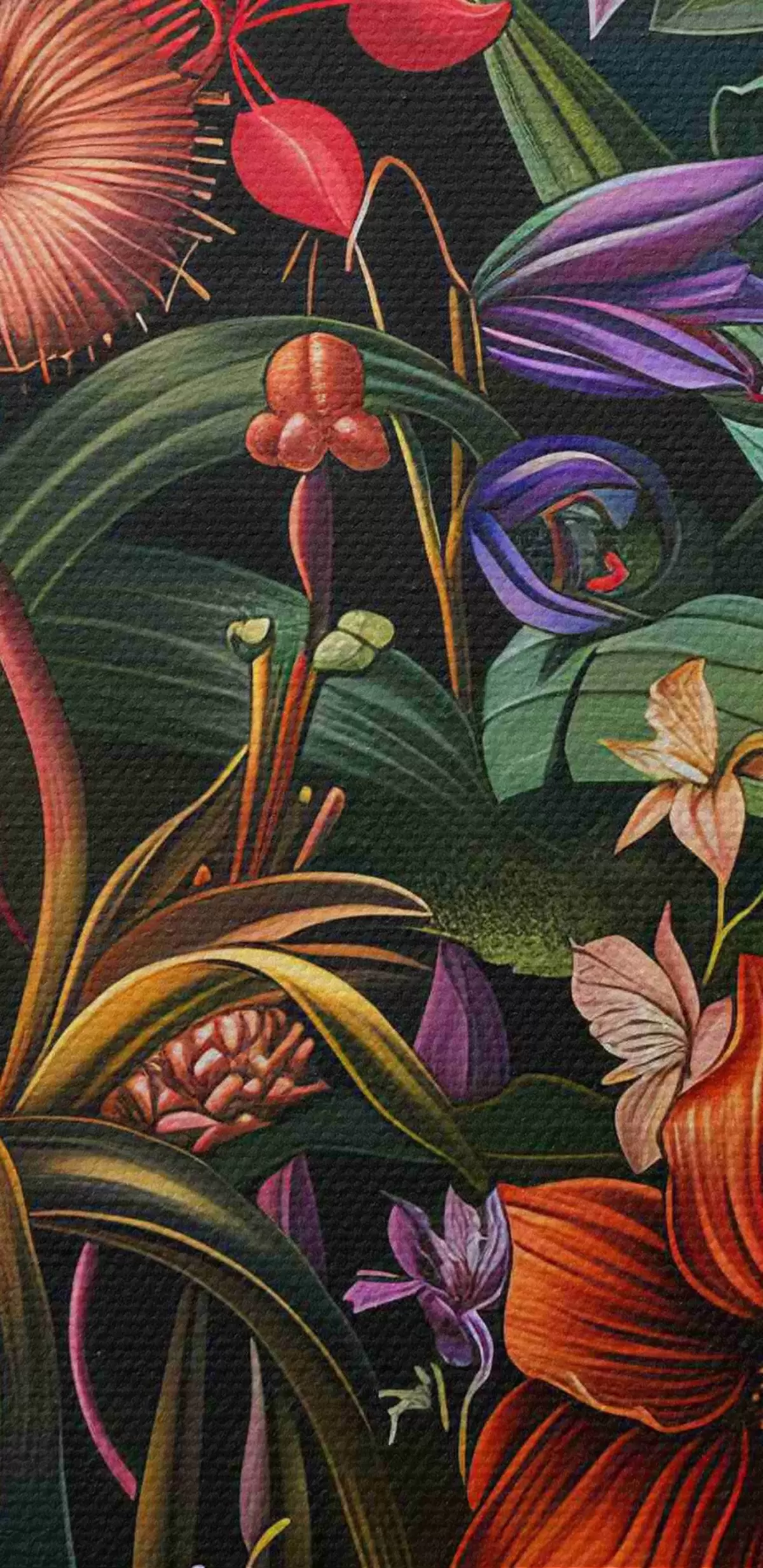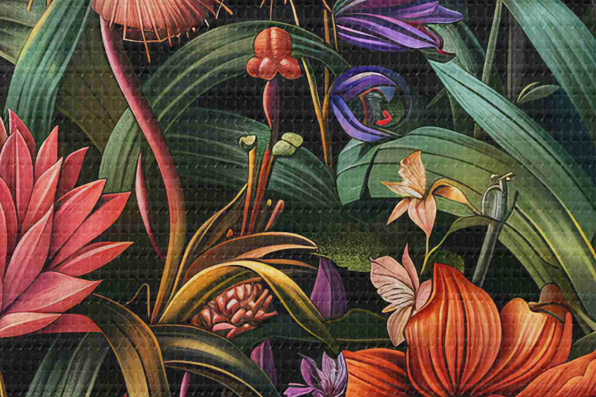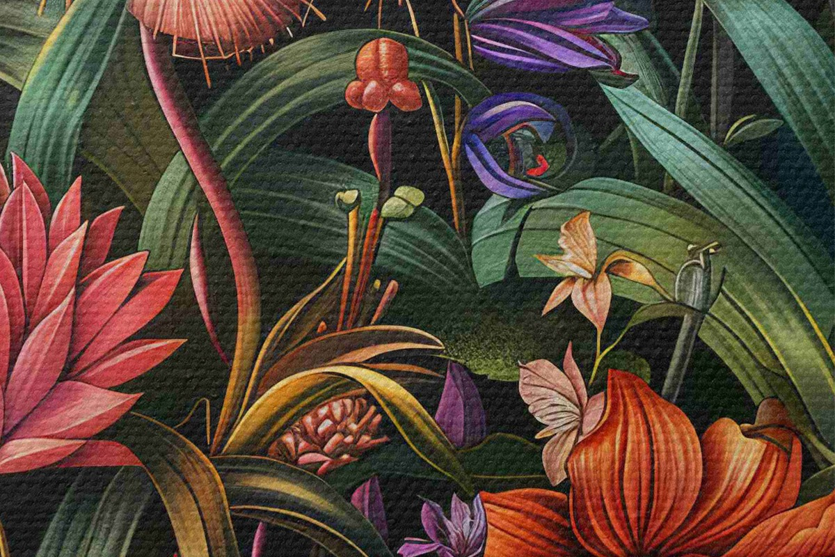 Attēls Tropu kompozīcija ar dažādiem apstādījumiem un tropu ziediem Nr r40667