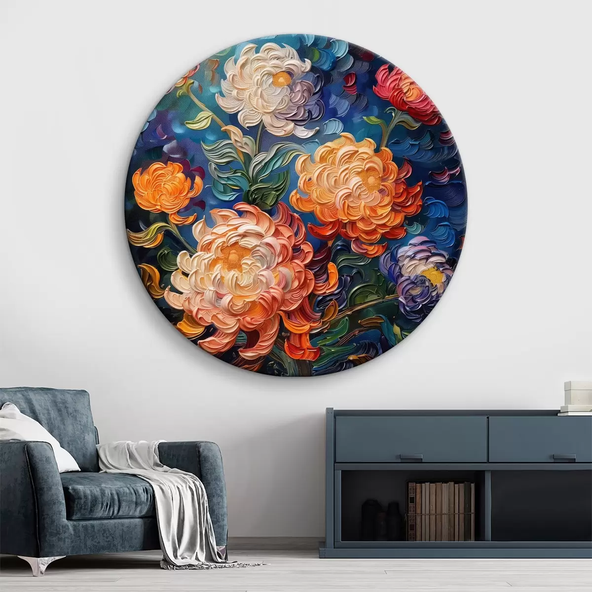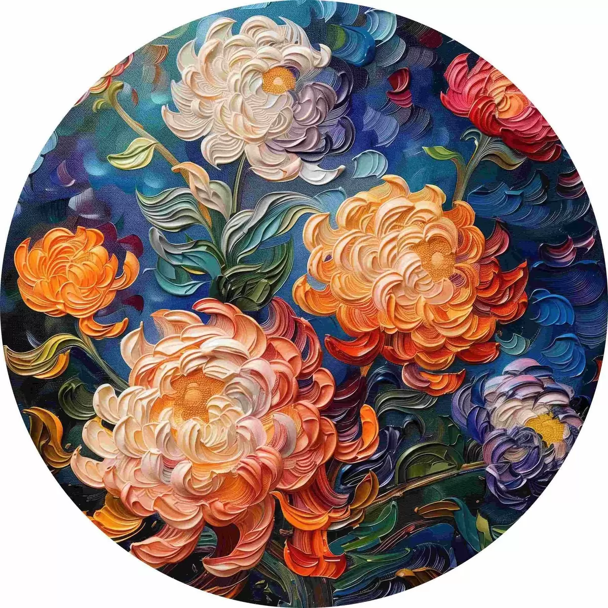 Apaļas gleznas Ziedu gleznošana Van Goga stilā r40672