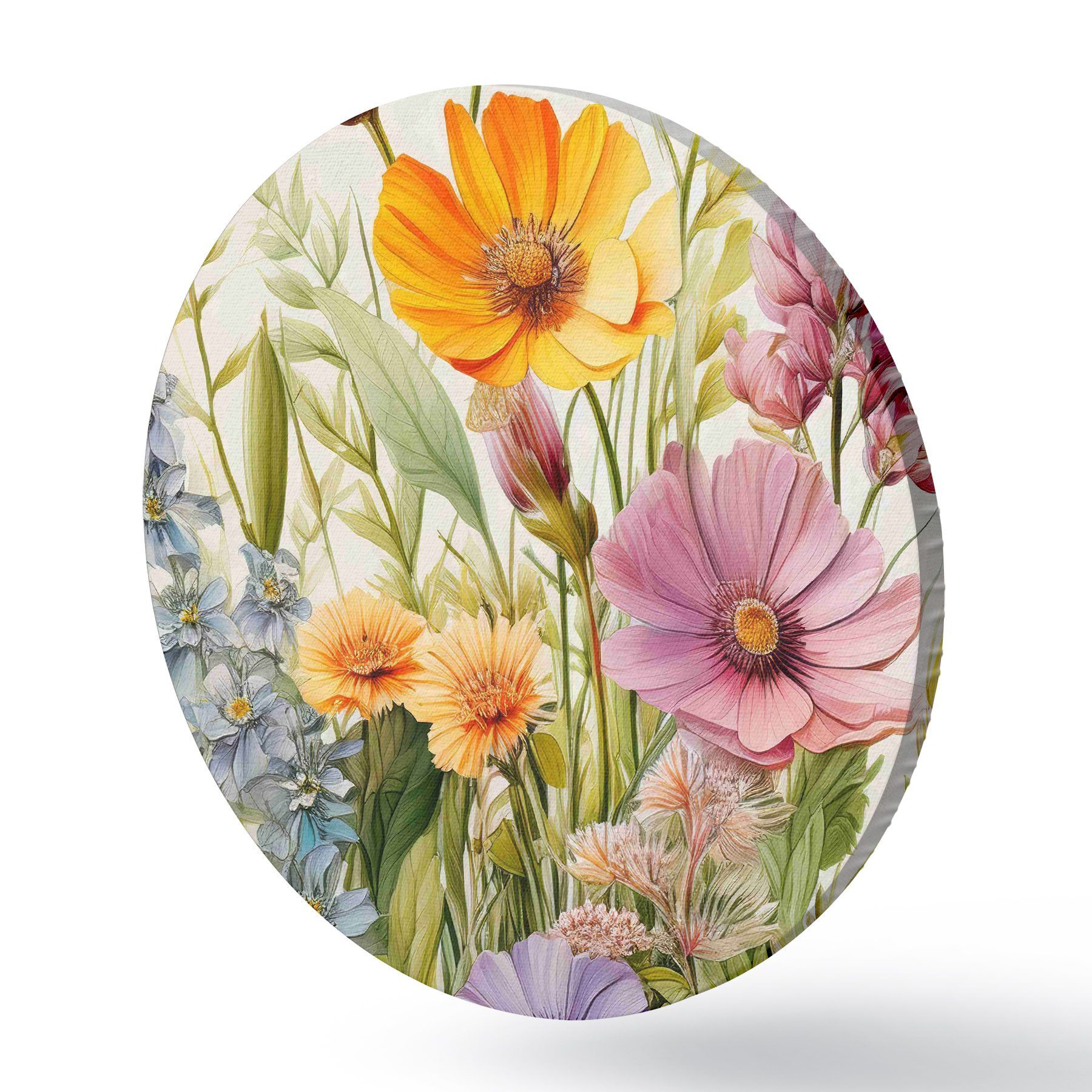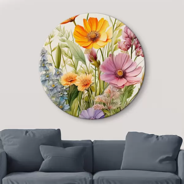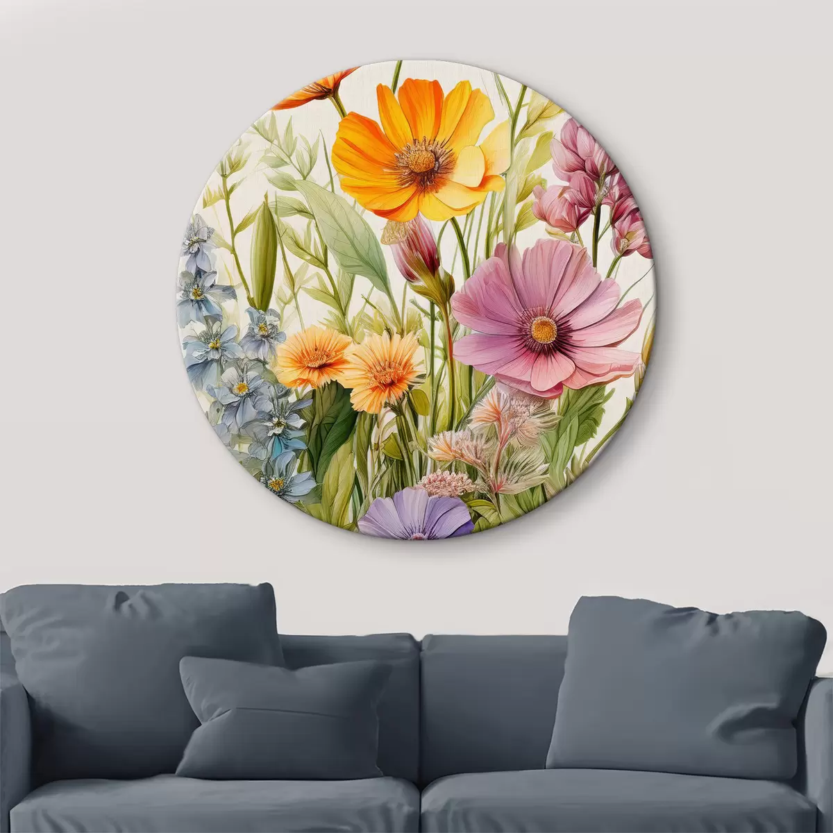 Apaļas gleznas daudzkrāsaini savvaļas ziedi, ziedu kompozīcija r40708