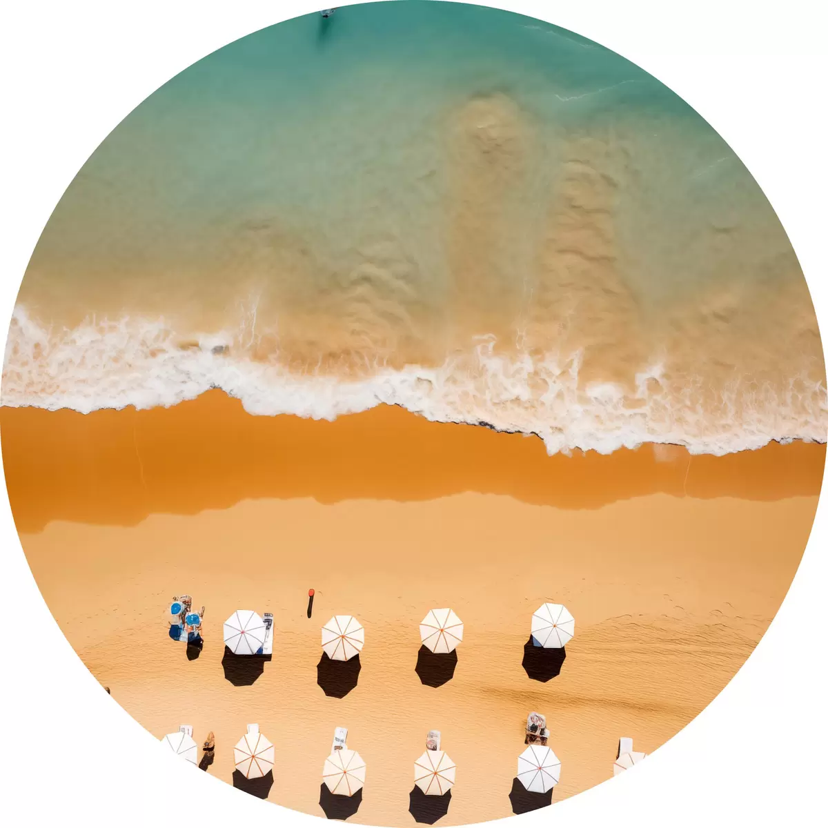 Apaļas gleznas Minimālistisks ainavas skats no jūras un pludmales r40725