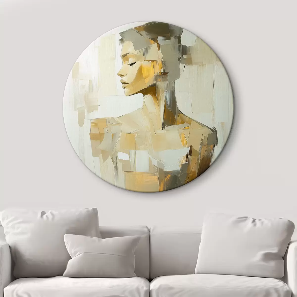 Apaļas gleznas Sievietes abstrakcija ar otas triepieniem r40739
