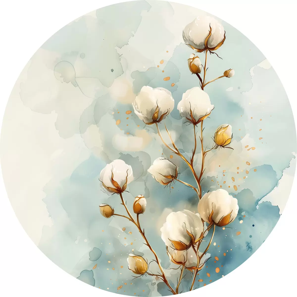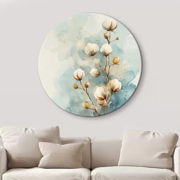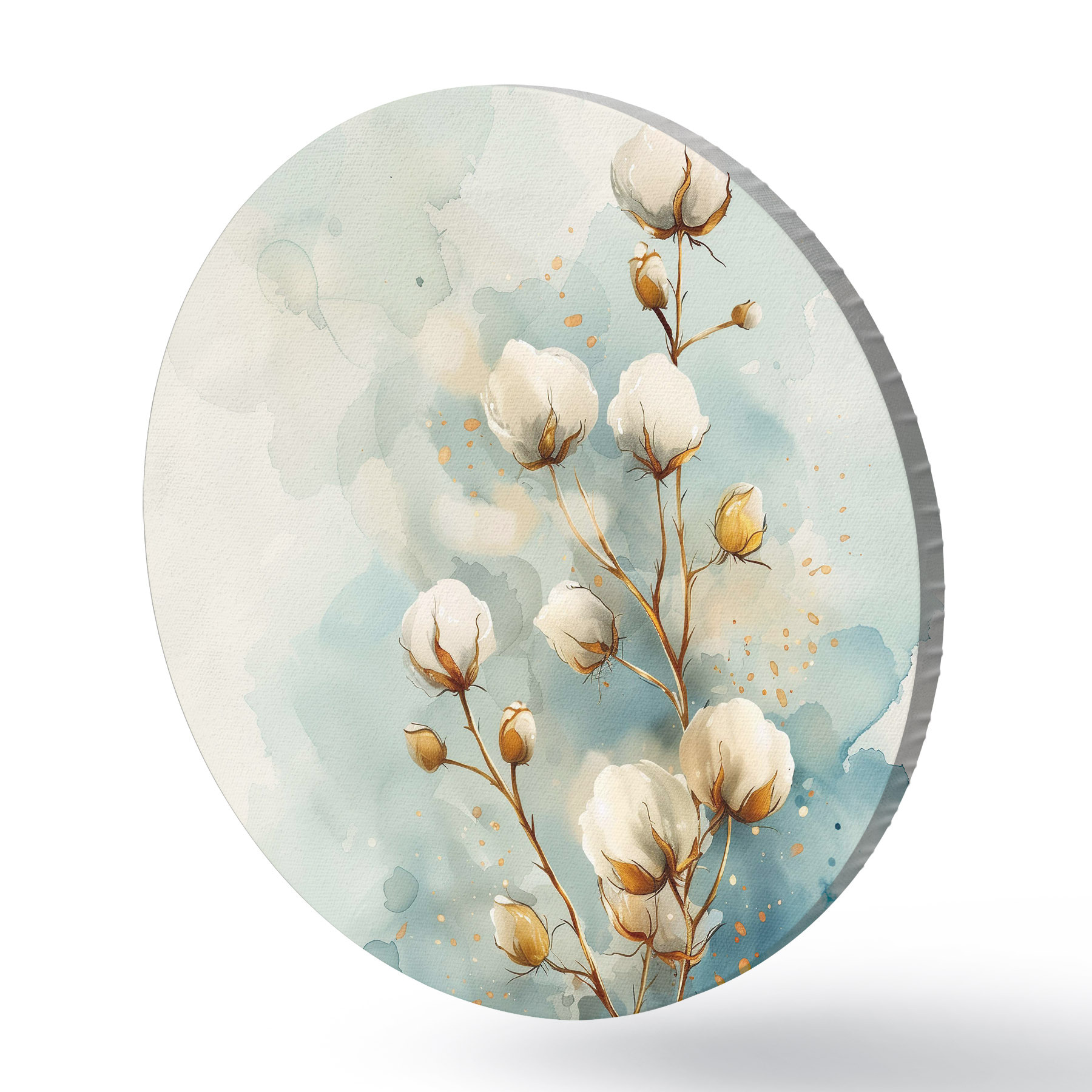 Apaļas gleznas Kokvilnas zariņš uz akvareļa fona r40780
