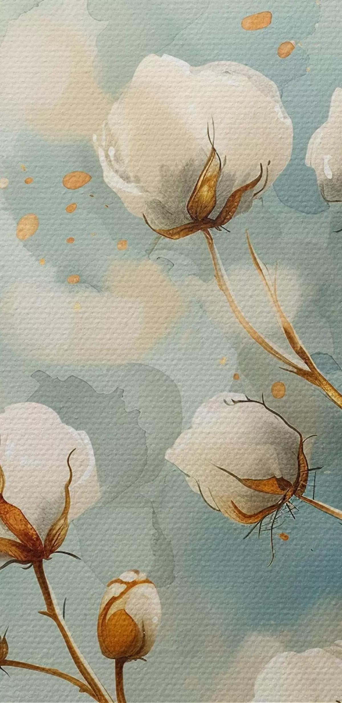 Attēls Kokvilnas zariņš uz akvareļa fona Nr r40780