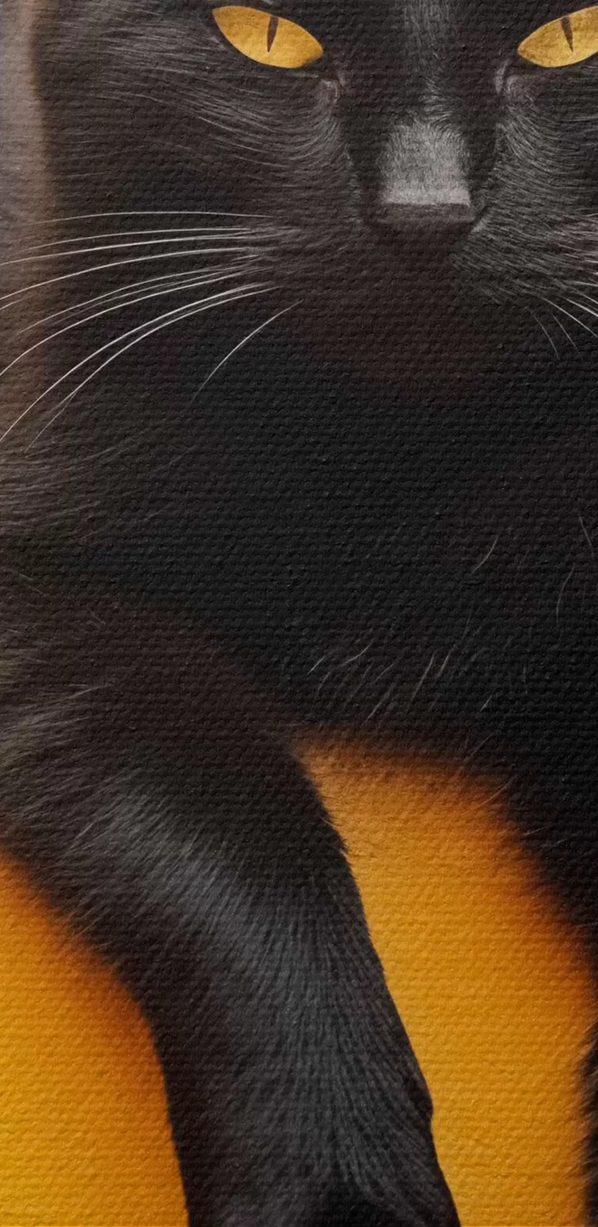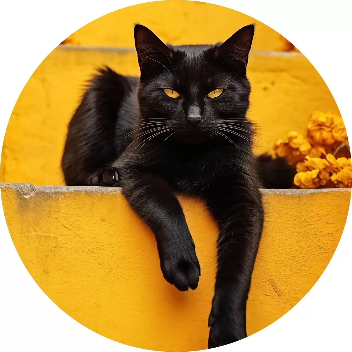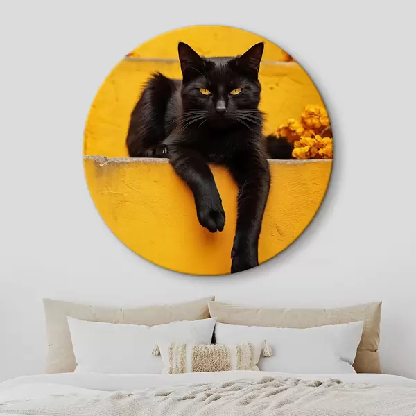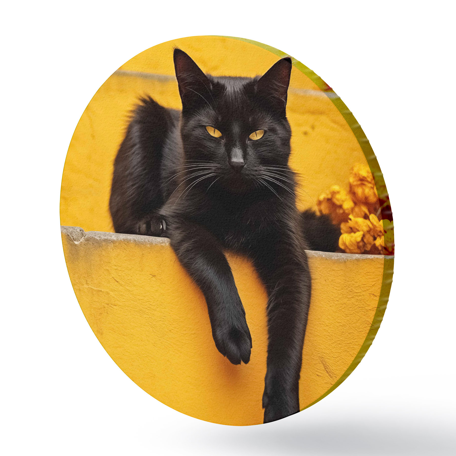 Apaļas gleznas Uz dzeltenām kāpnēm guļ melns kaķis r40798