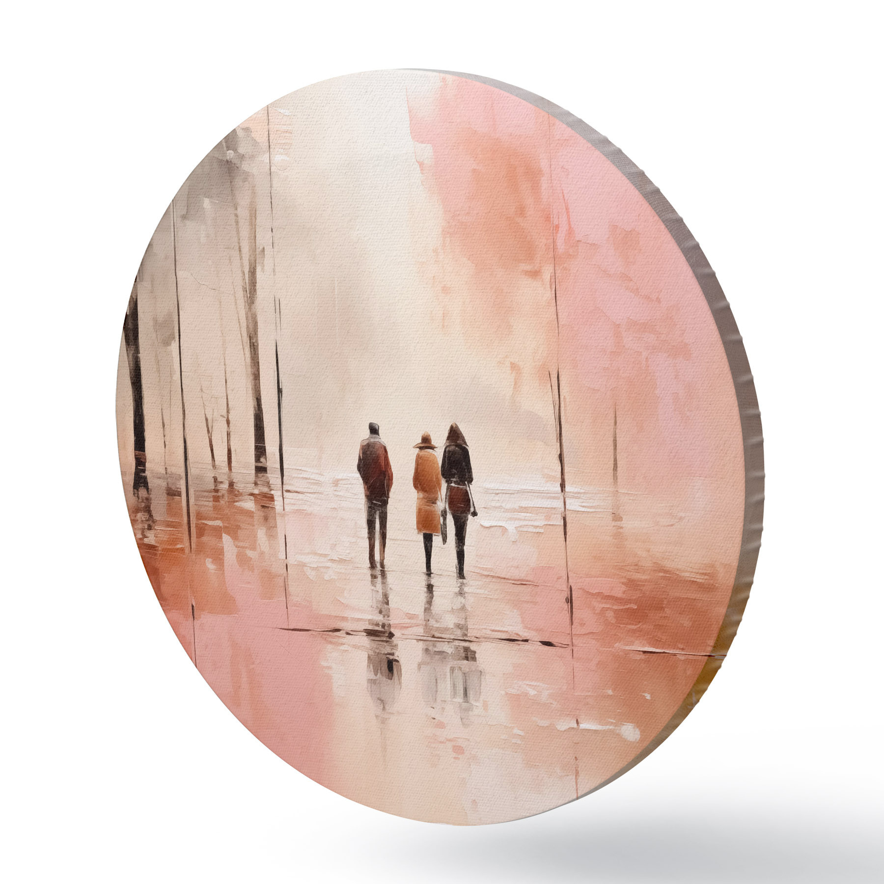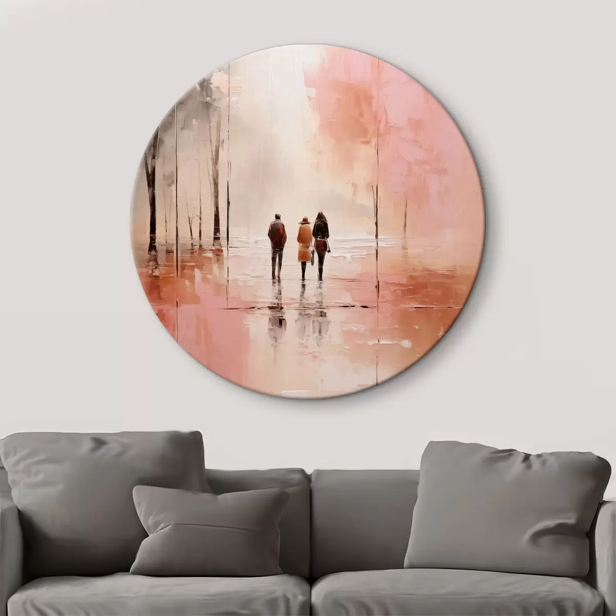 Apaļas gleznas Cilvēki, kas staigā parkā abstrakcija, rozā sarkana krāsa r40802