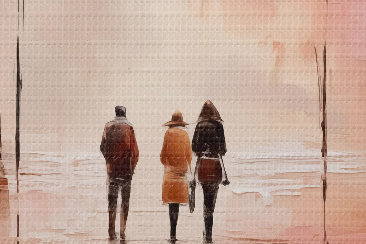 Attēls Cilvēki, kas staigā parkā abstrakcija, rozā sarkana krāsa Nr r40802
