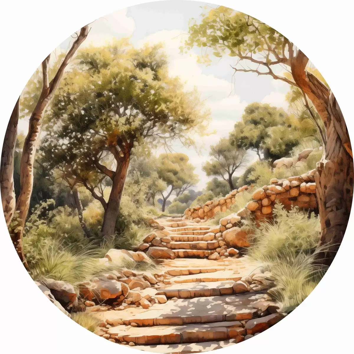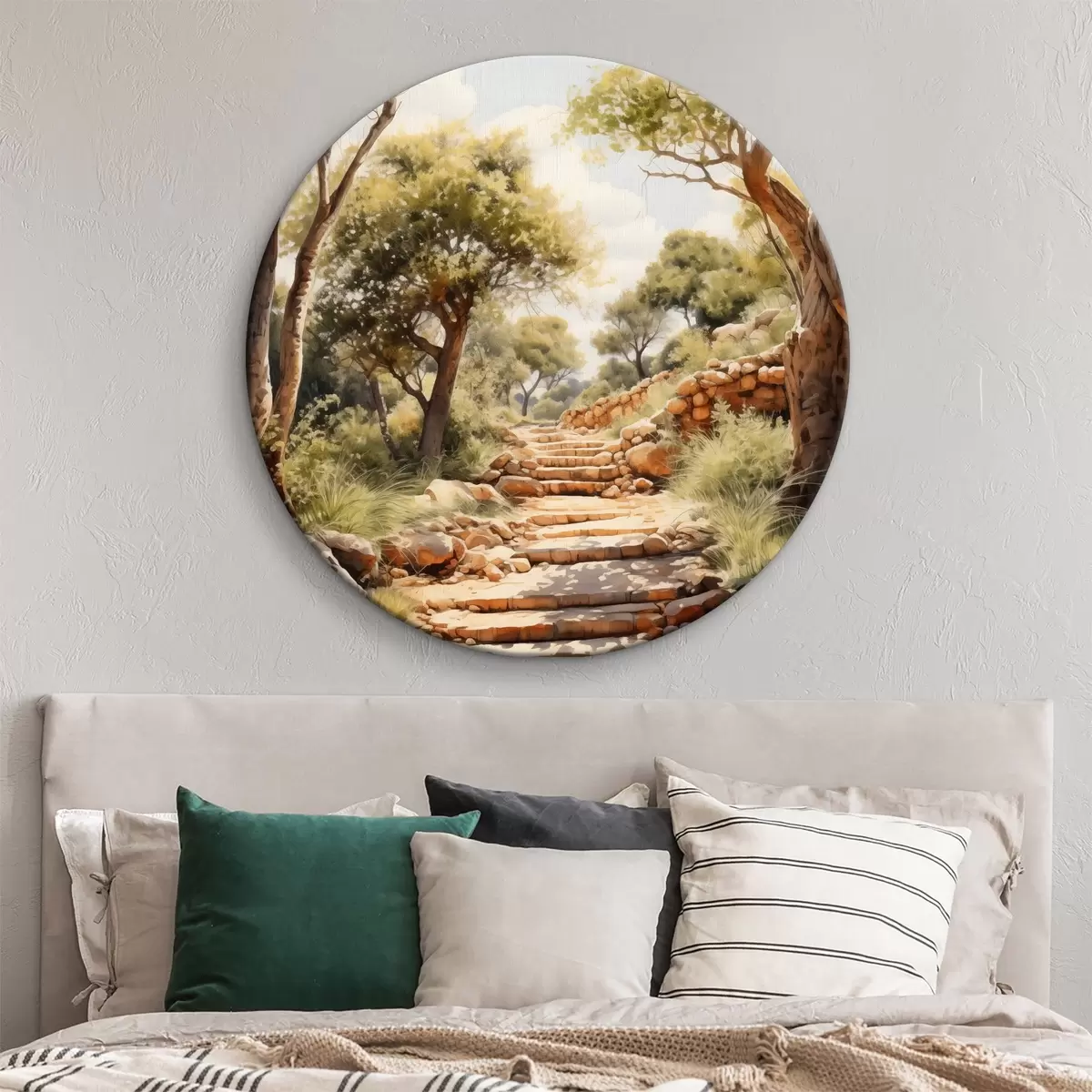 Apaļas gleznas Ceļš parkā akvareļu imitācija r40804