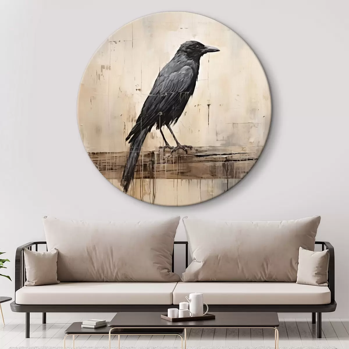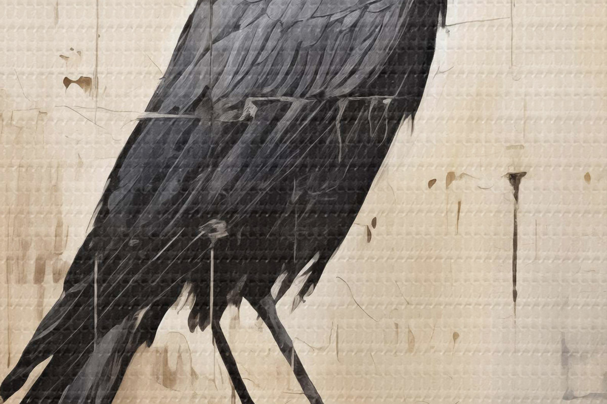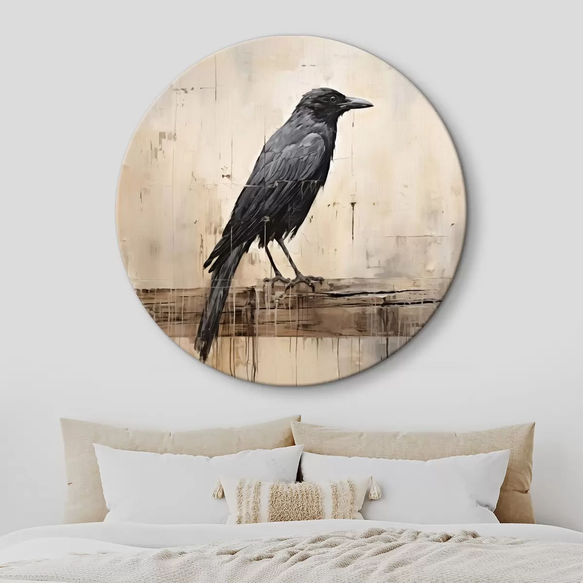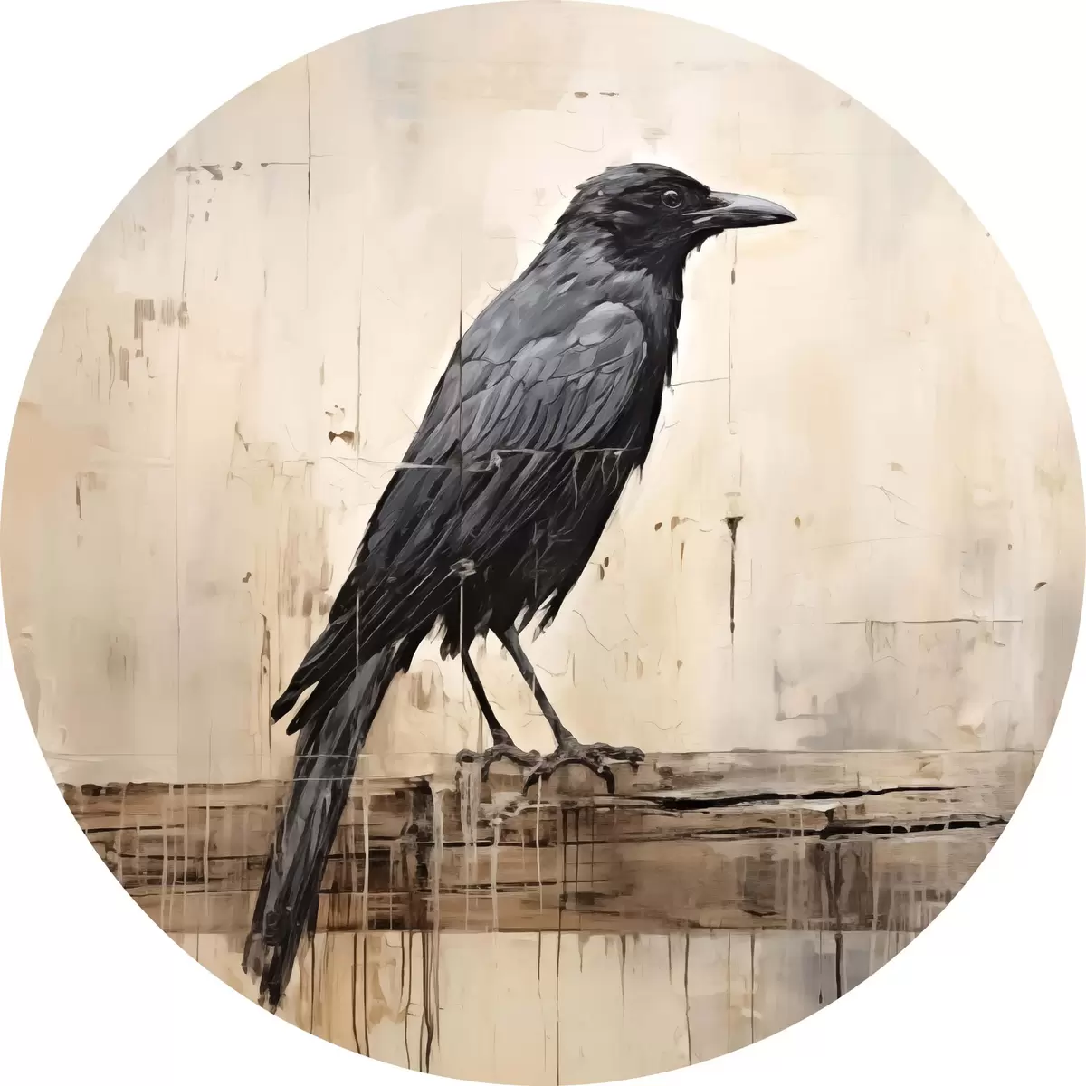 Attēls Melns krauklis sēž uz baļķa uz abstrakta fona Nr r40808