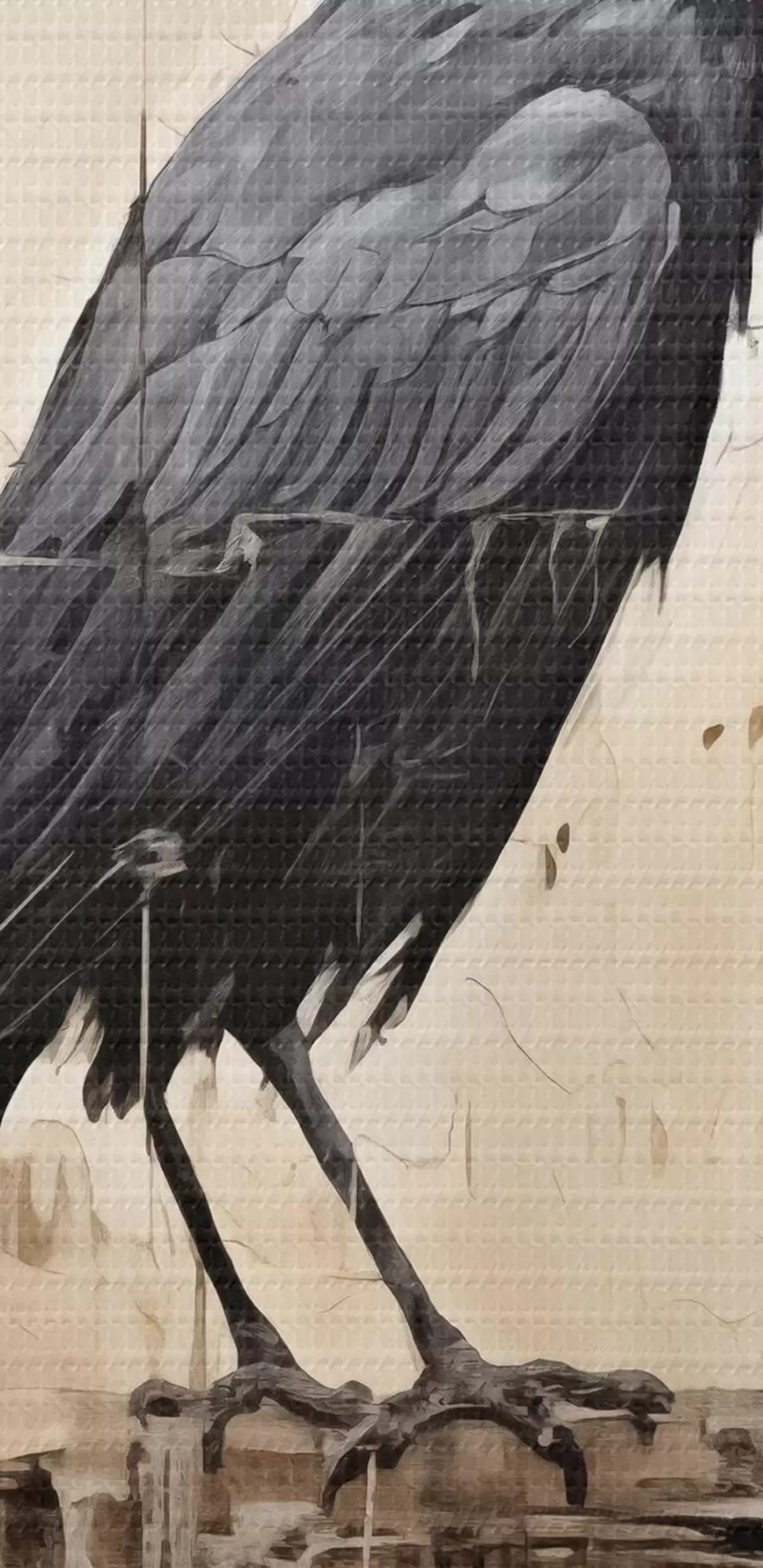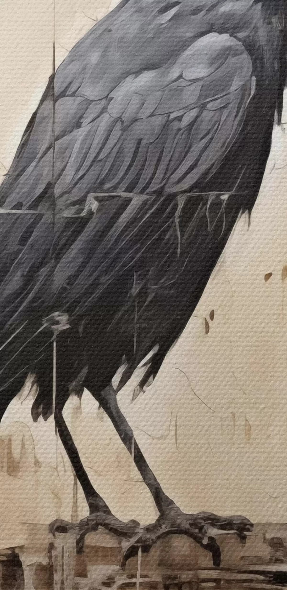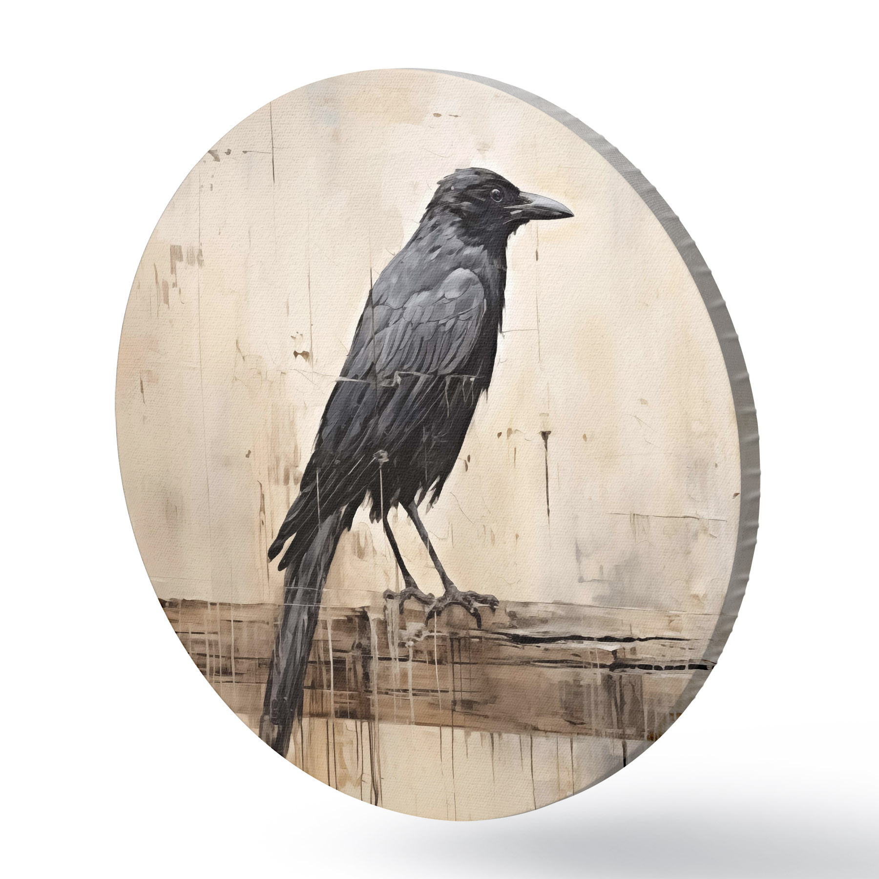 Attēls Melns krauklis sēž uz baļķa uz abstrakta fona Nr r40808