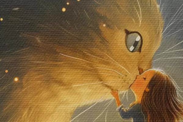 Attēls Meitene skūpsta kaķi Nr r40825