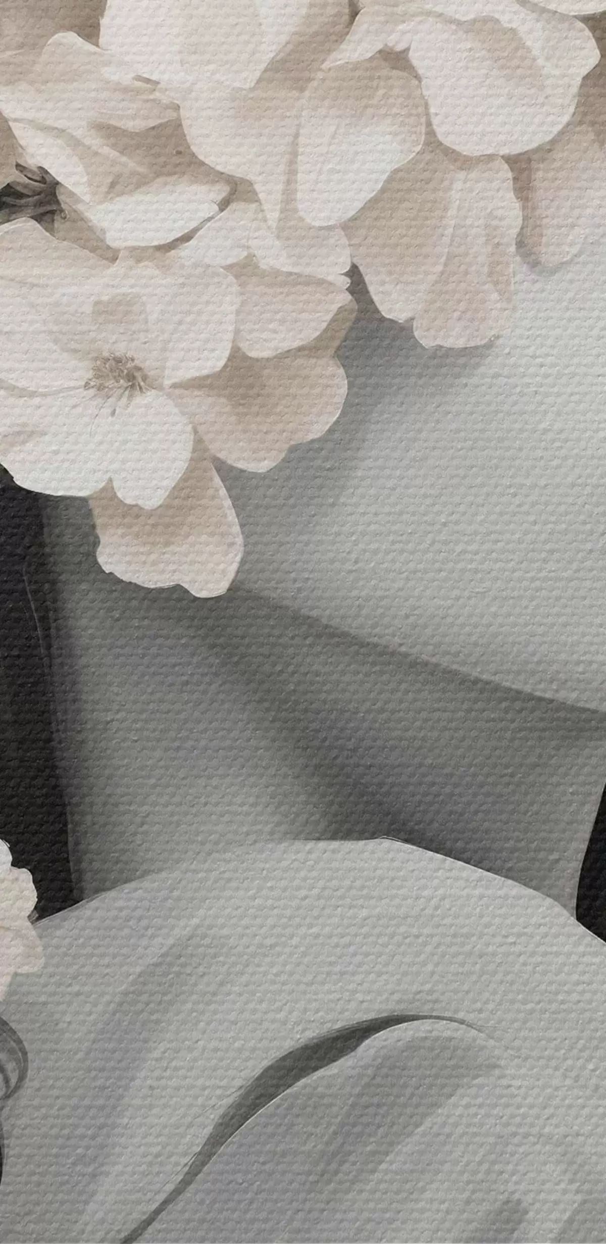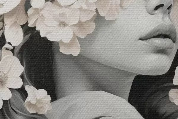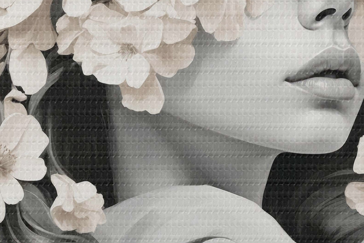 Attēls Meitene ar ziediem uz sejas melnā un baltā krāsā Nr r40849