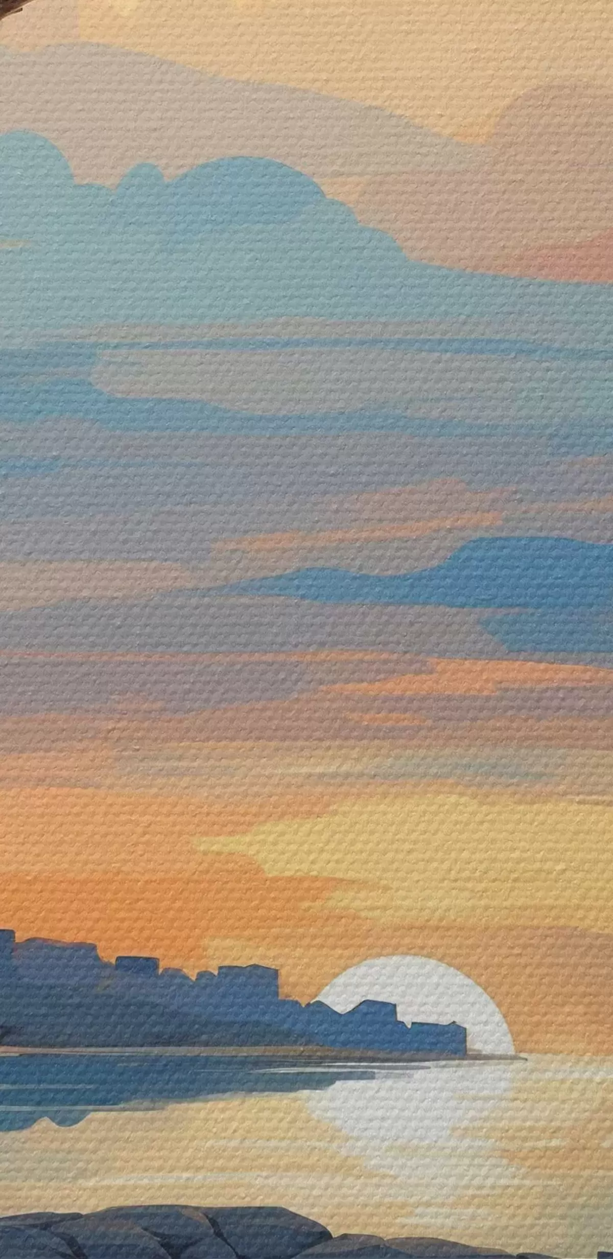 Glezna ir iekārtojama uzreiz pēc tās saņemšanas. Glezna tiks izstiepta uz 2 cm platām koka nestuvēm.