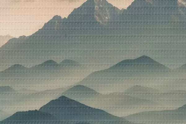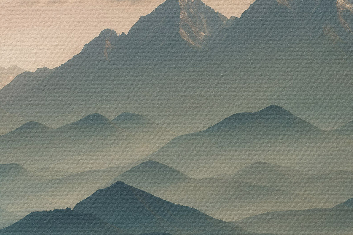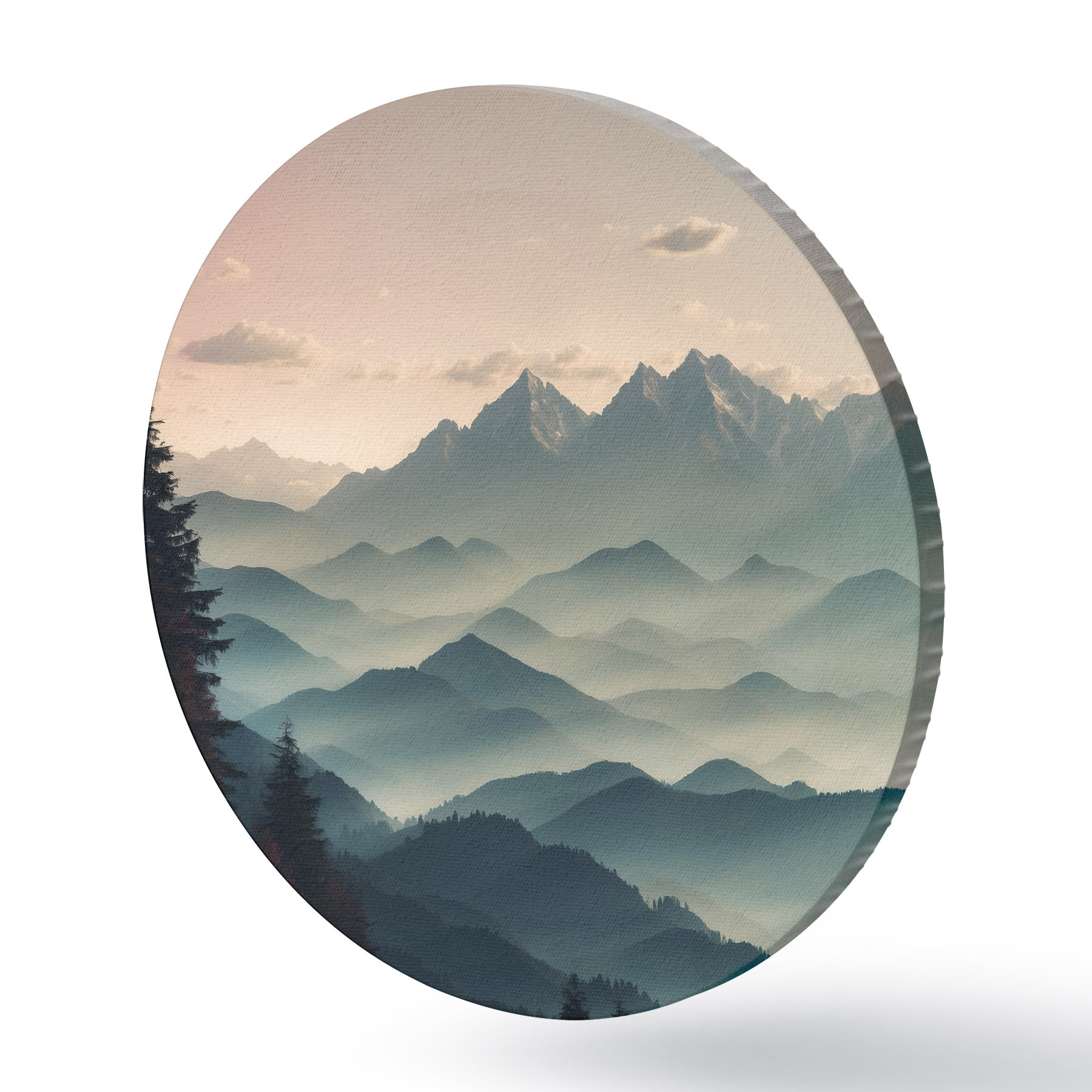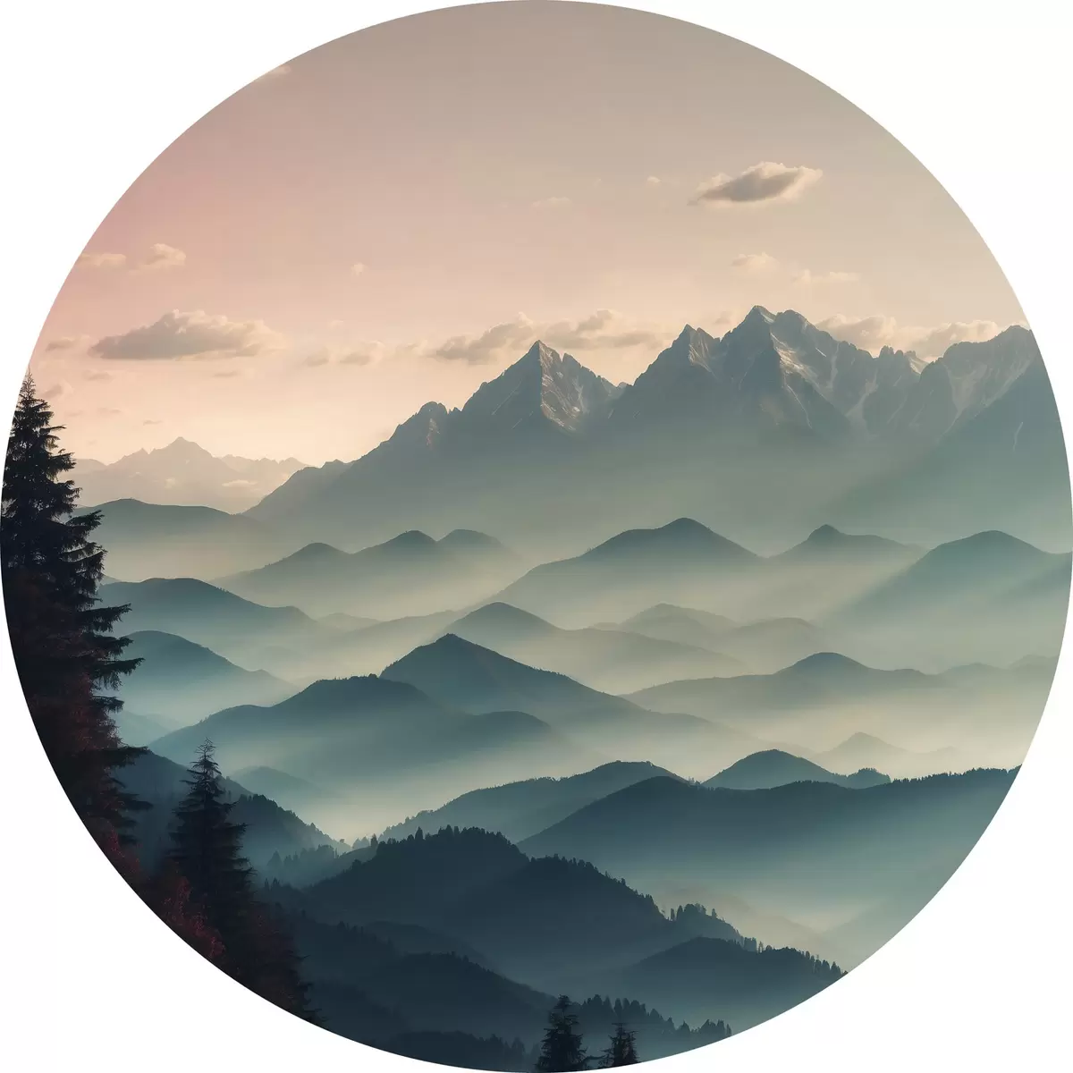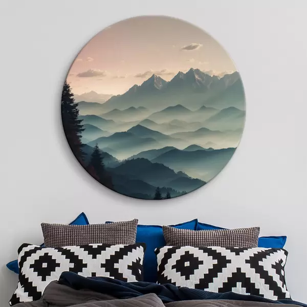 Apaļas gleznas Skats uz kalniem miglā r40851