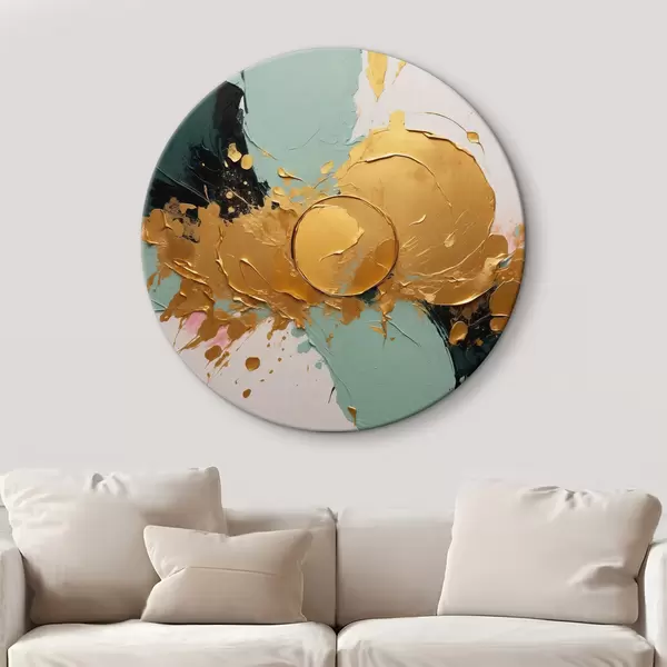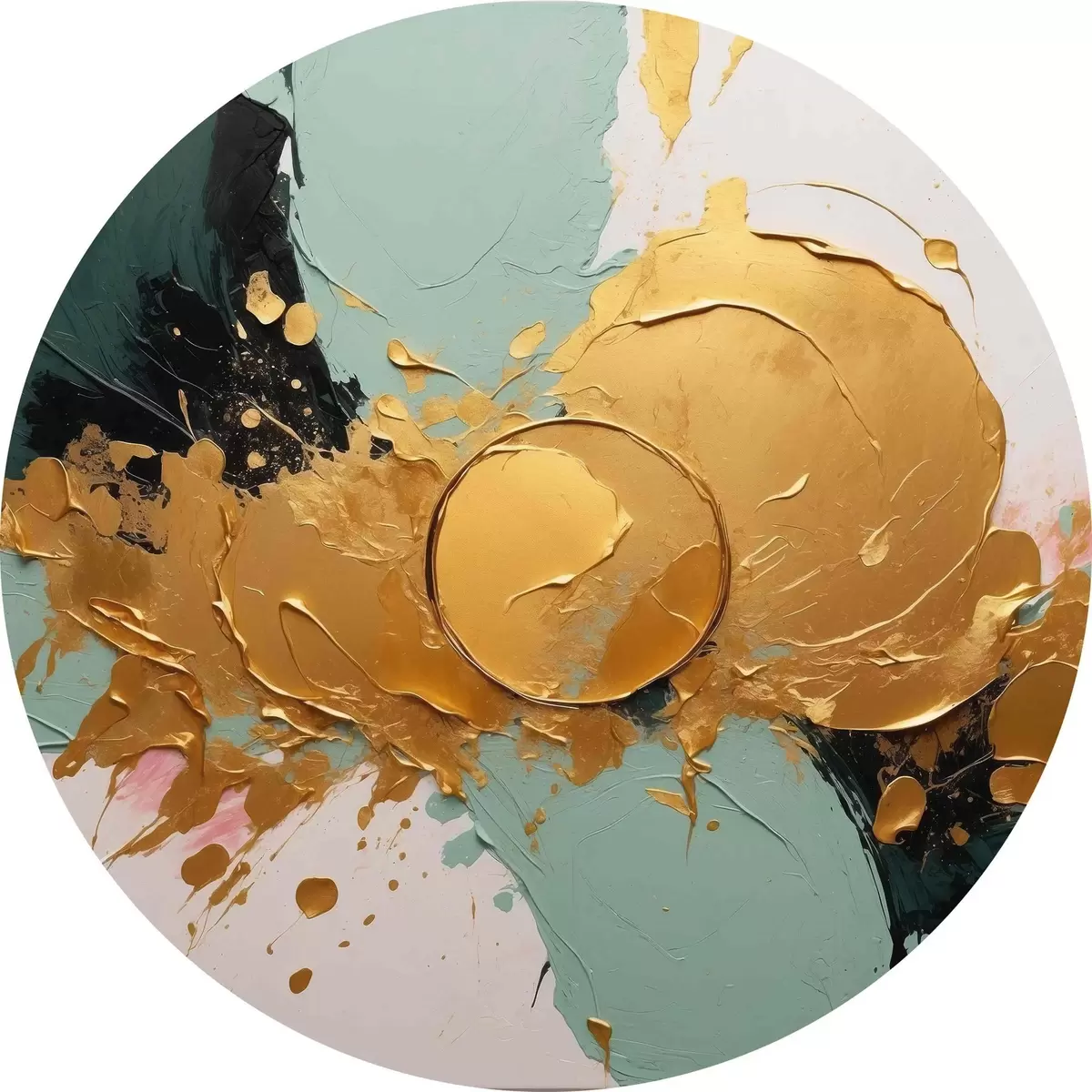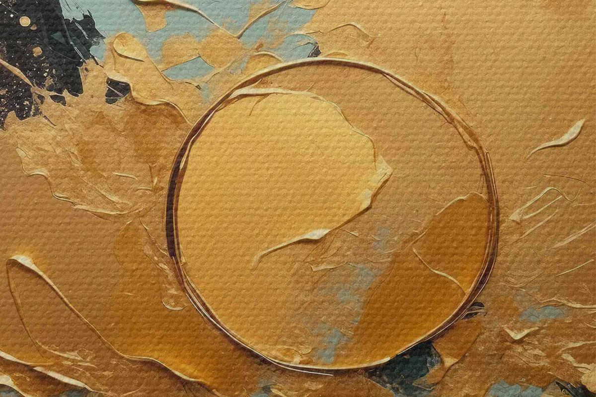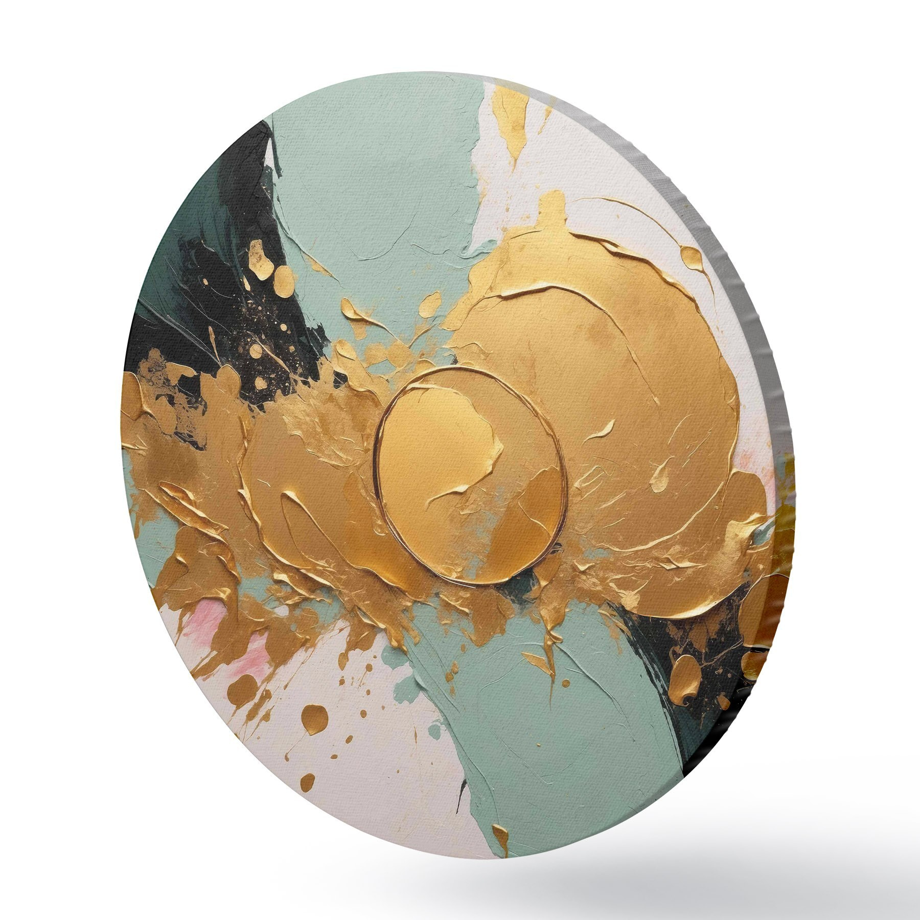 Apaļas gleznas Abstraktā eļļas glezna baltā, melnā un dzeltenā krāsā r40855