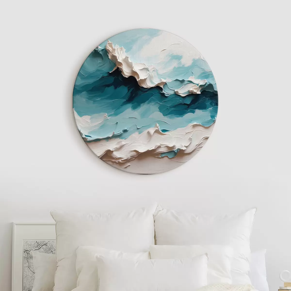 Apaļas gleznas Abstraktais vilnis un jūras putas r40859