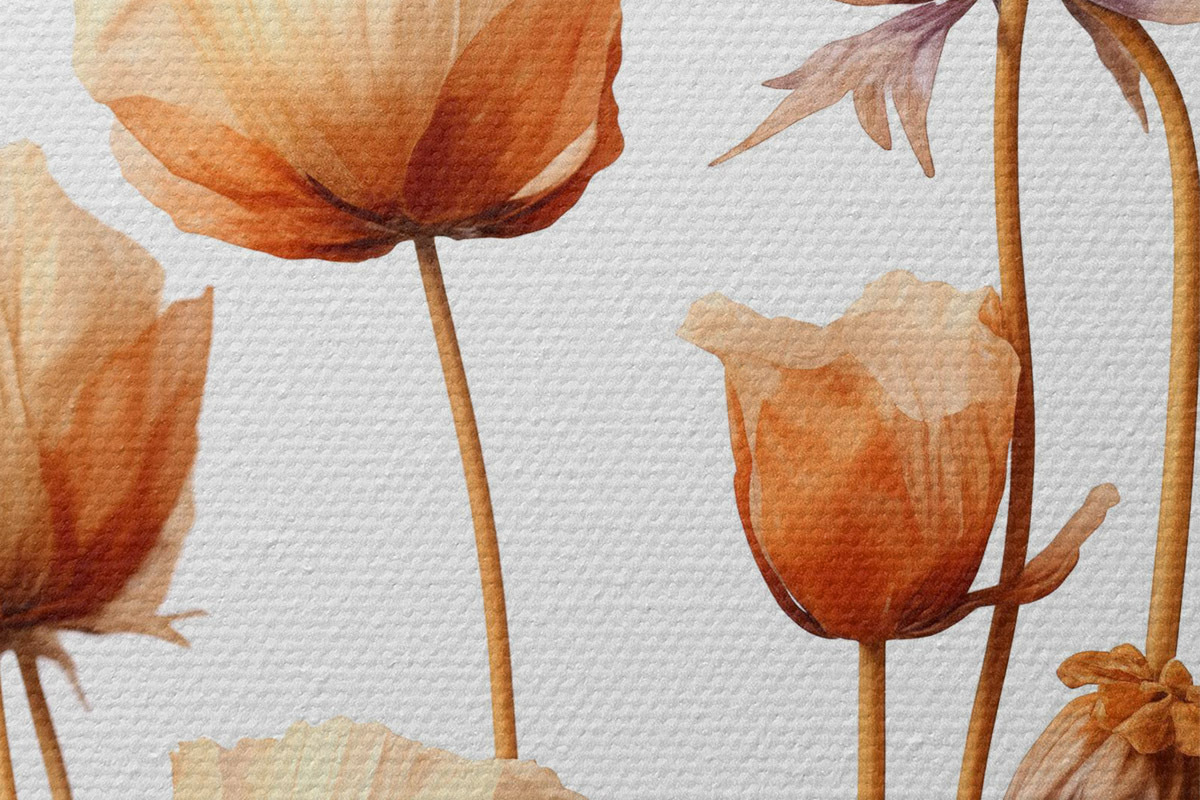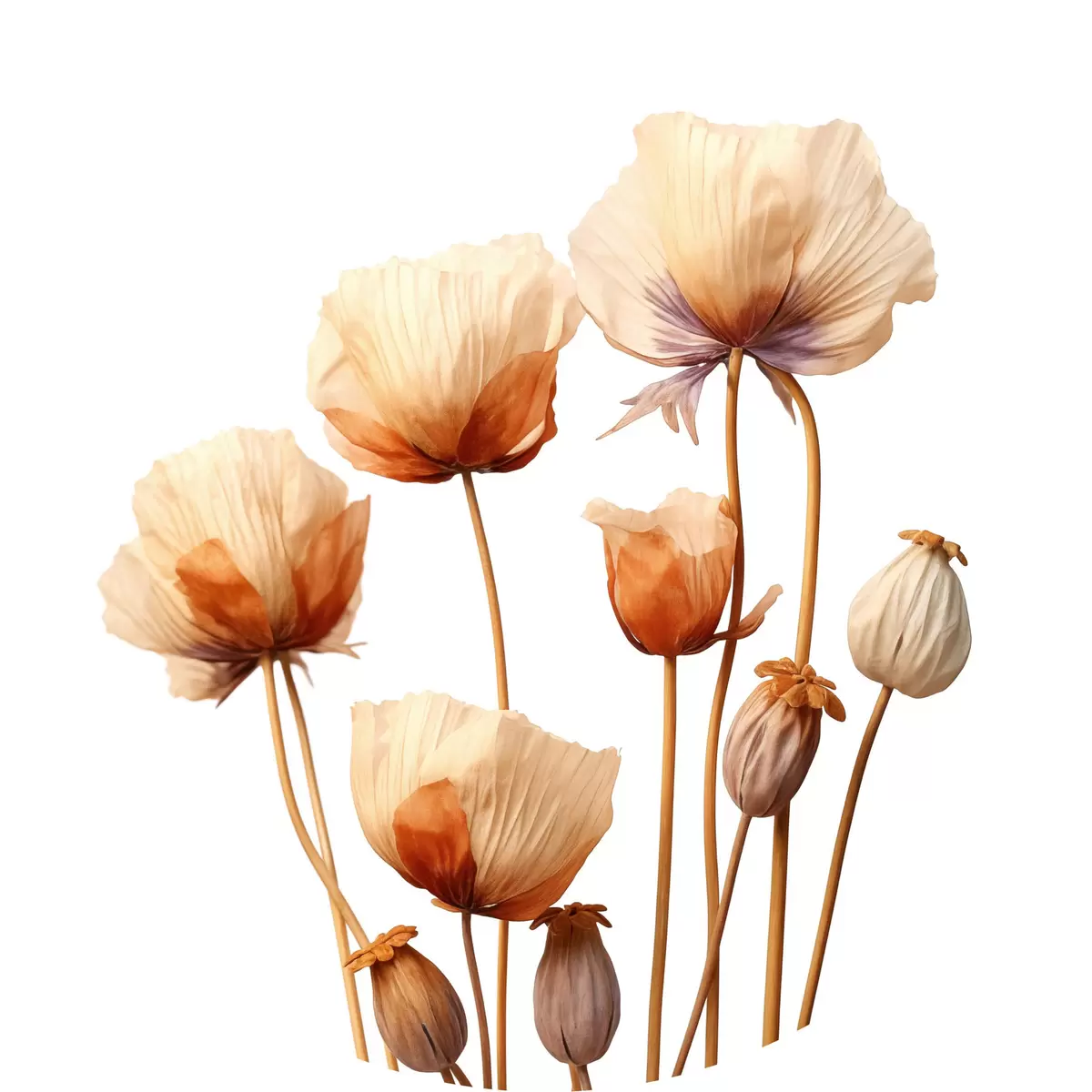 Attēls Magoņu ziedi uz kaltētiem kātiņiem minimālisms Nr r40883