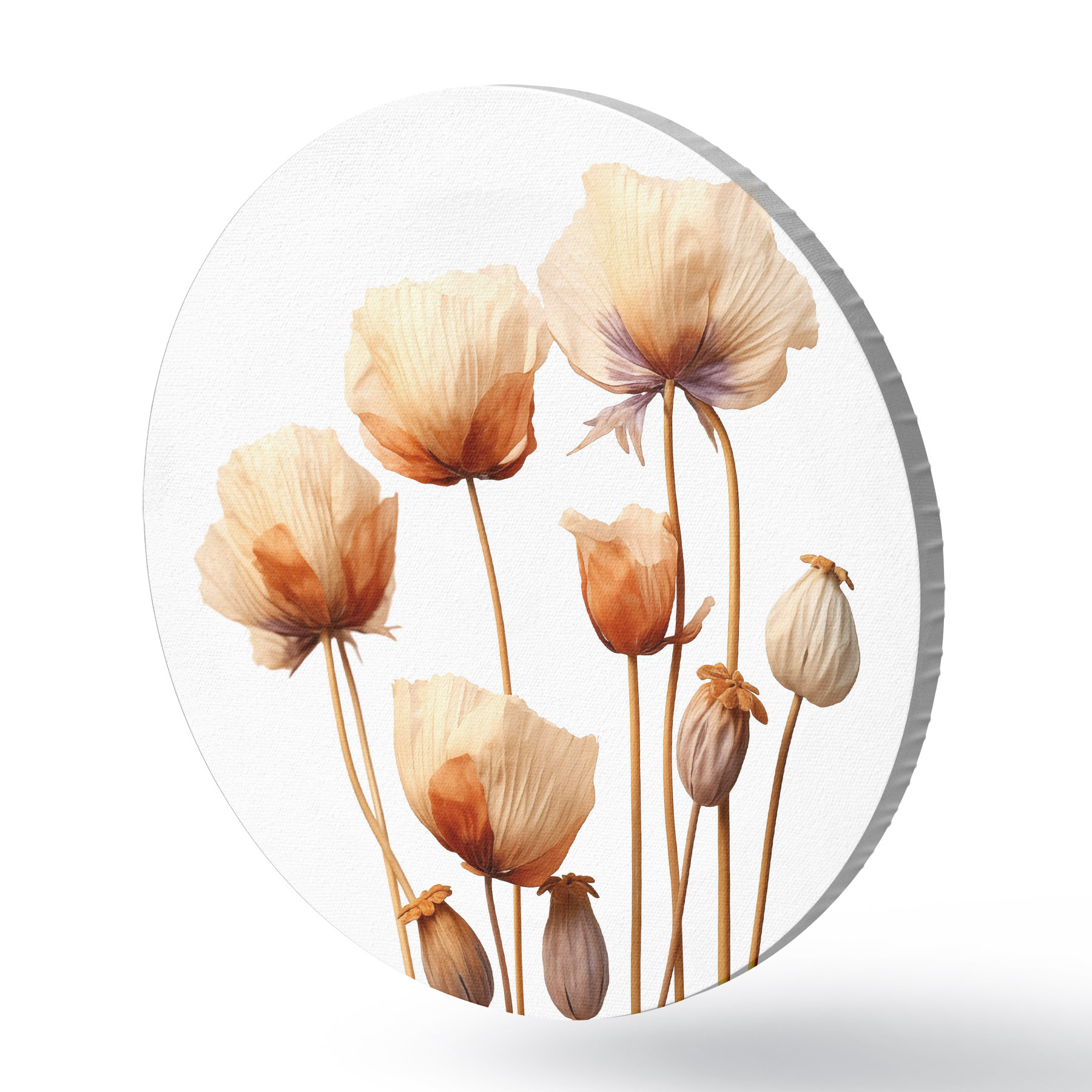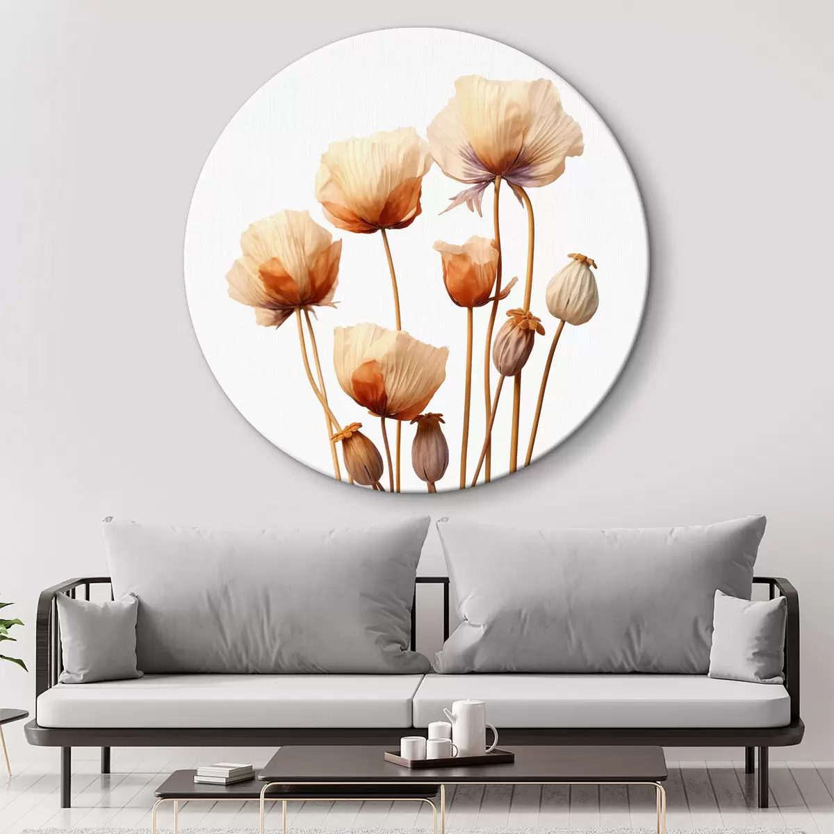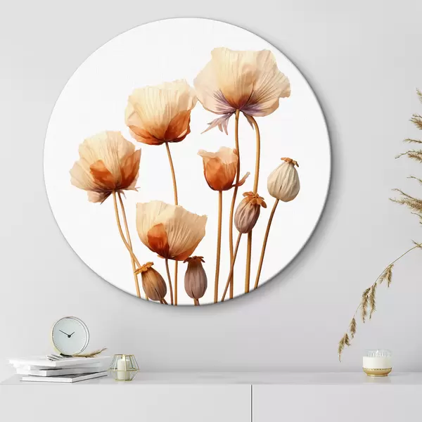 Apaļas gleznas Magoņu ziedi uz kaltētiem kātiņiem minimālisms r40883