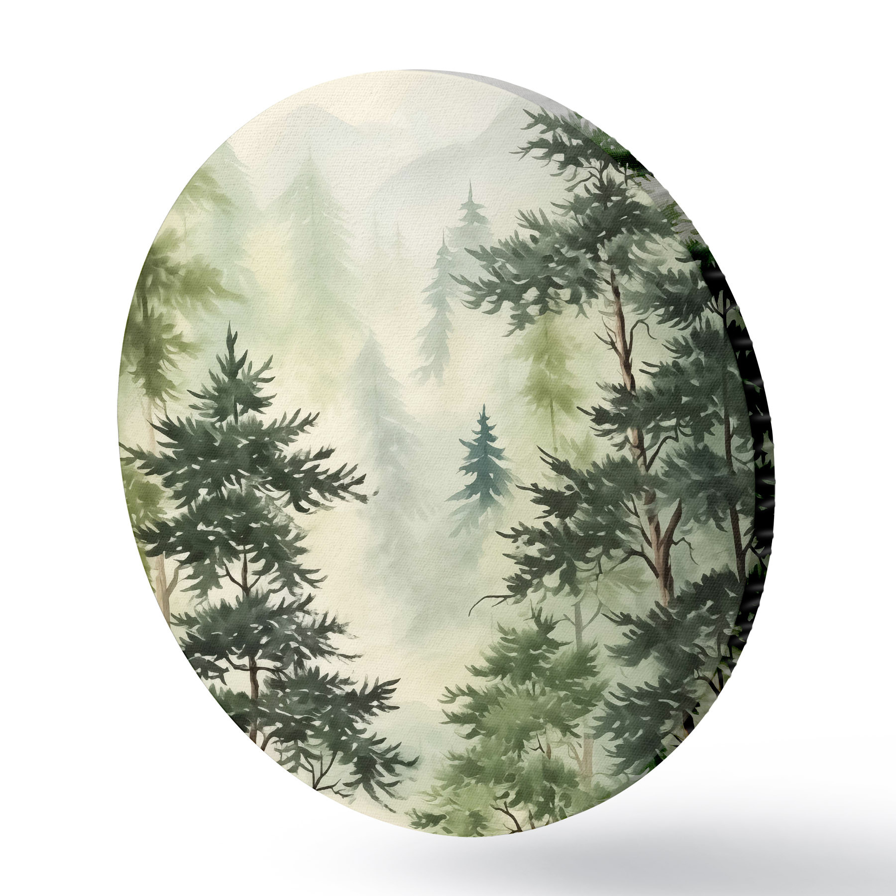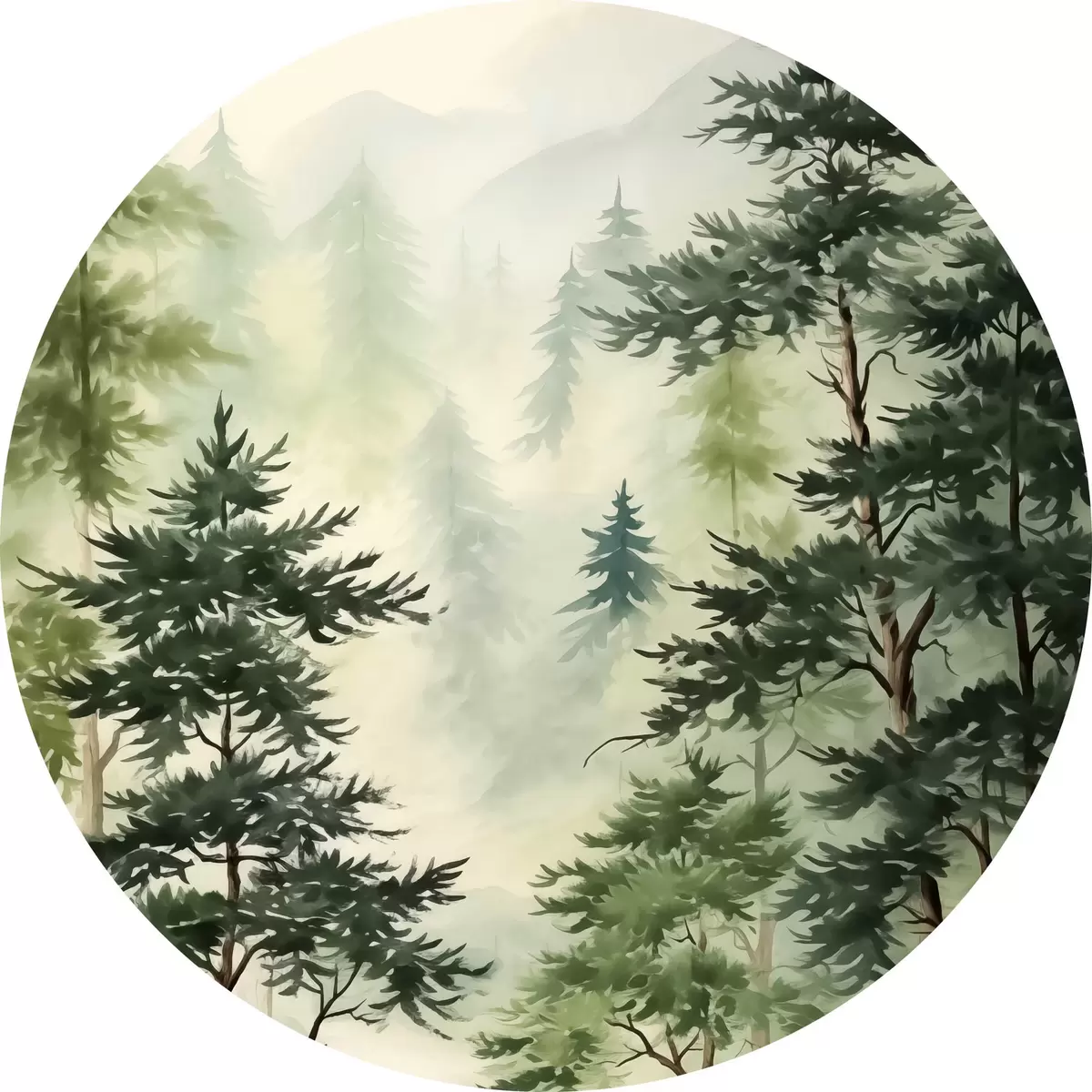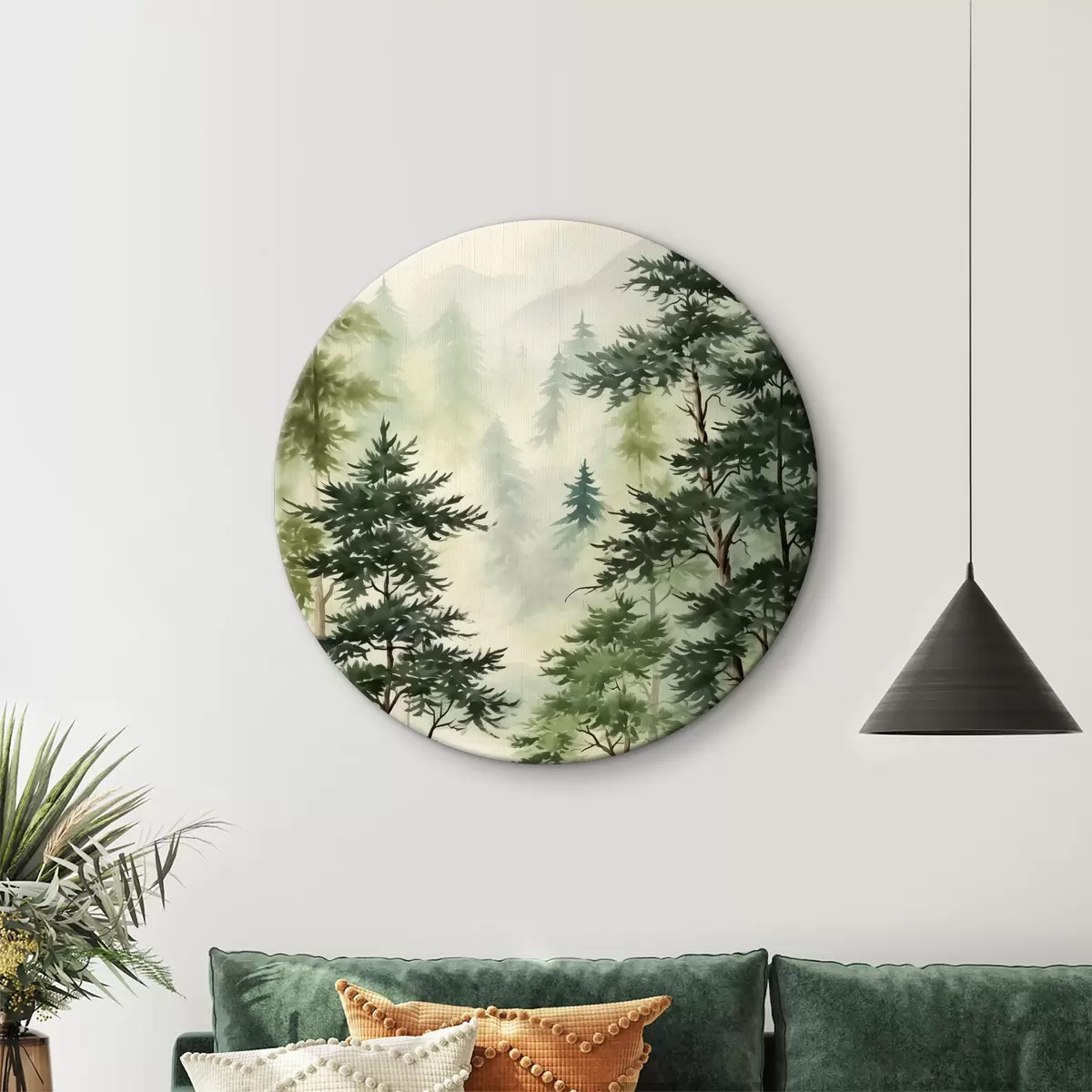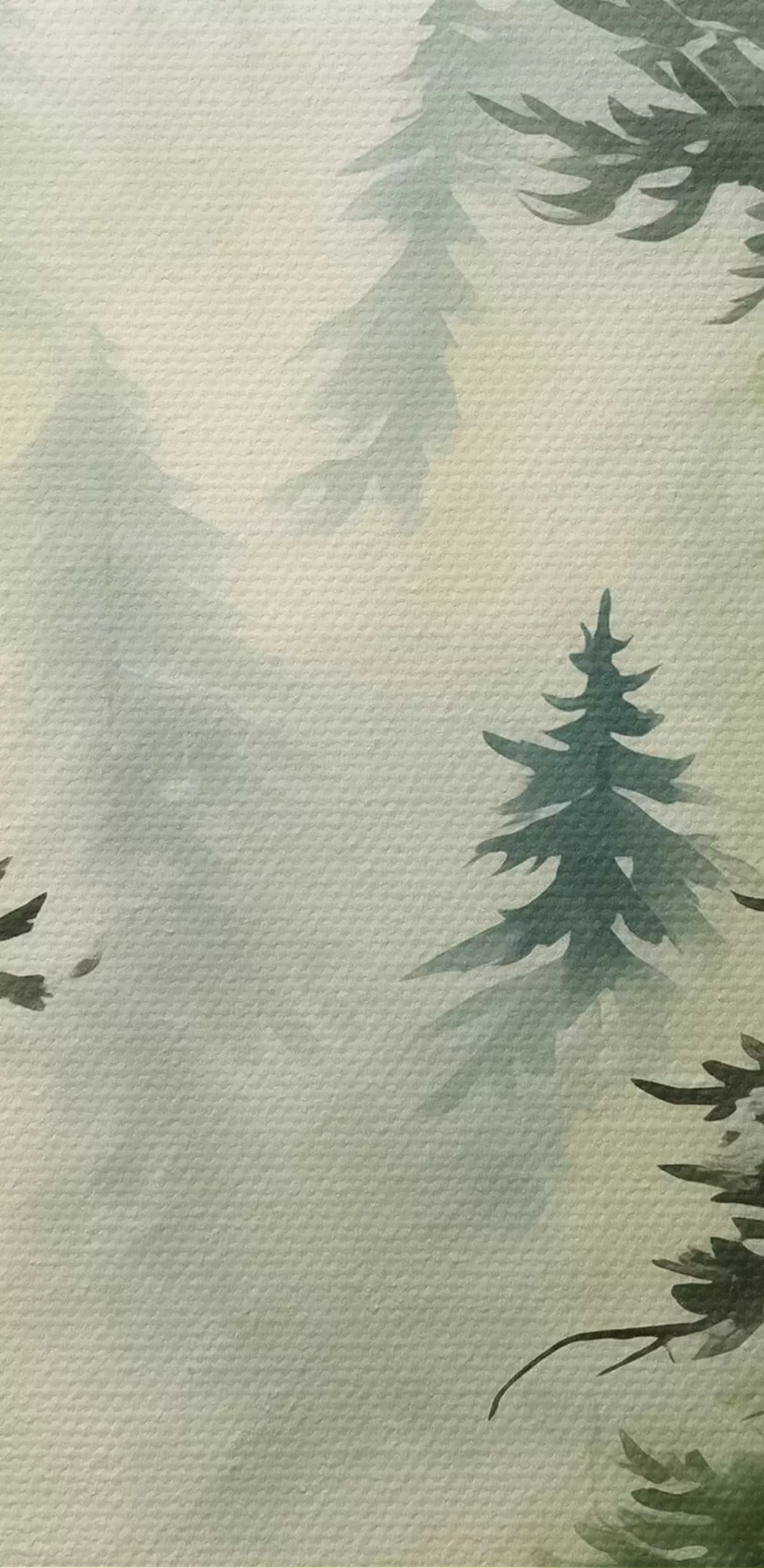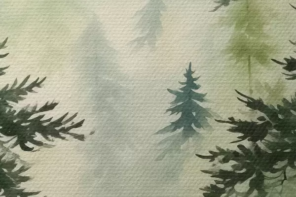 Attēls Egles mežā uz kalnu fona, akvarelis, zaļš Nr r40889