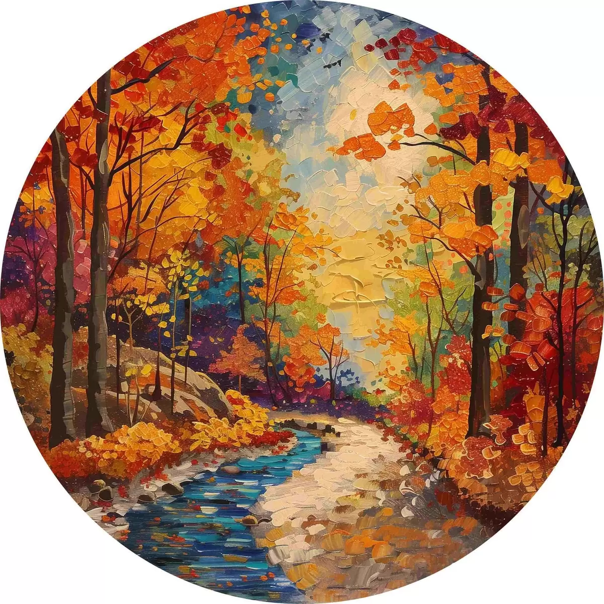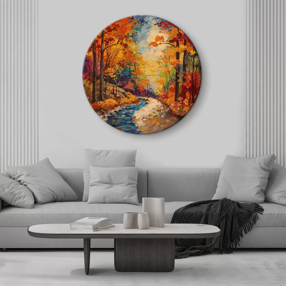 Apaļas gleznas Ceļš mežā ar akvareļkrāsām r40901