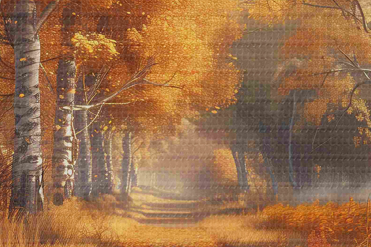 Smalkais diegu pinums uz šī audekla atgādina profesionālu mākslinieku audeklu virsmu.