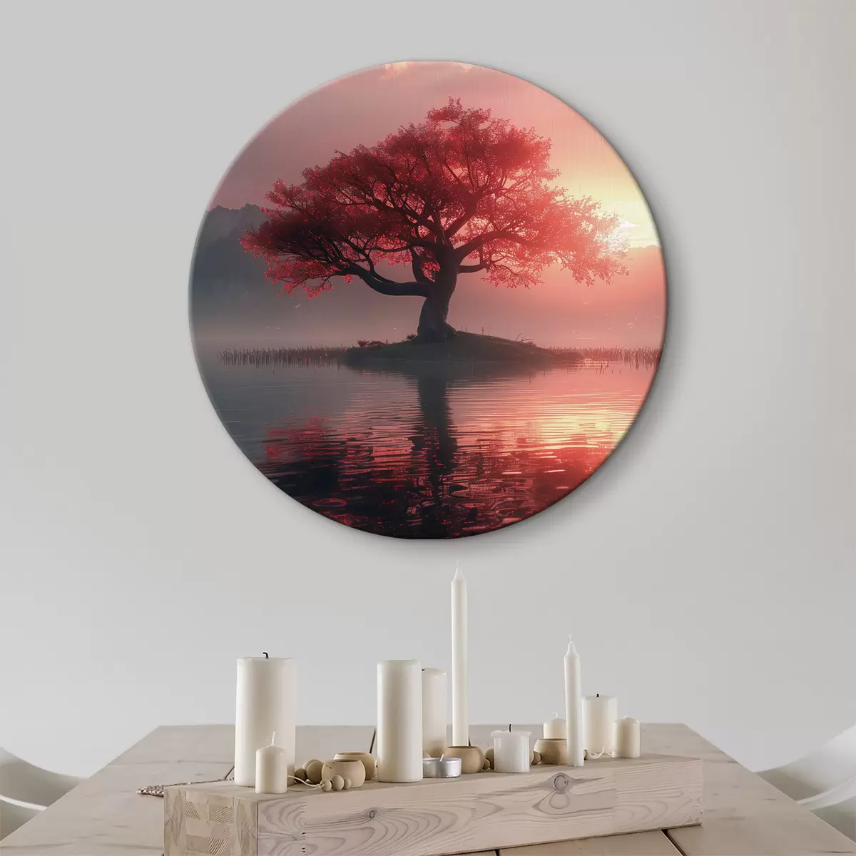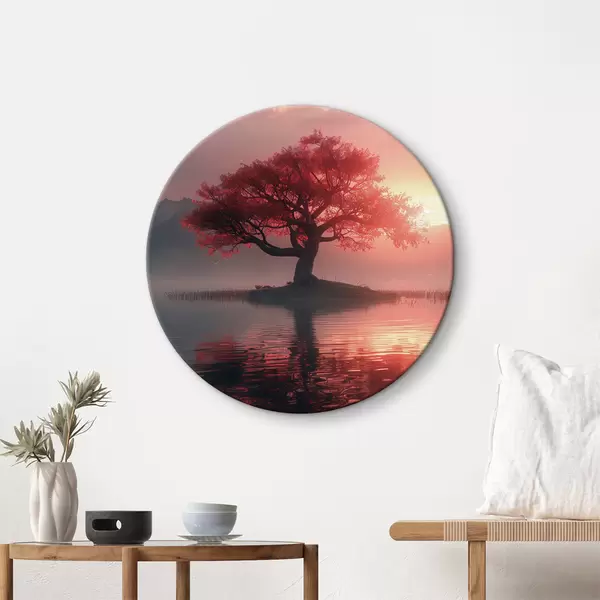 Apaļas gleznas Koks pie dīķa saulrietā r40934