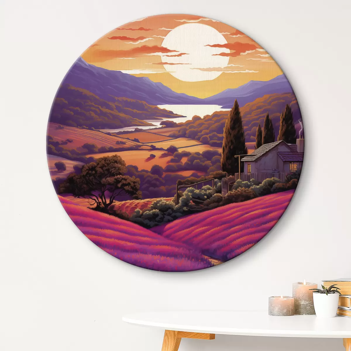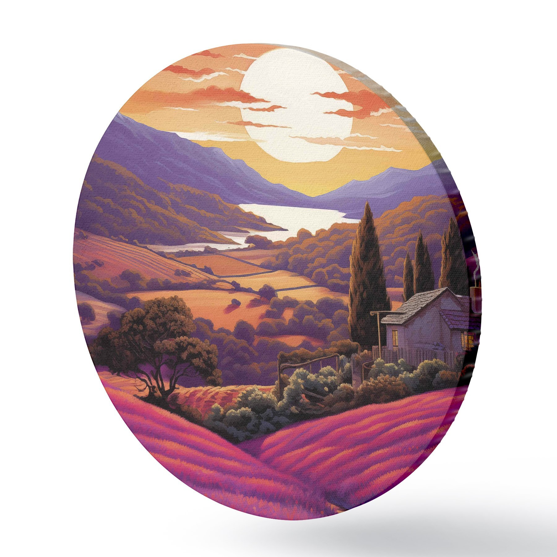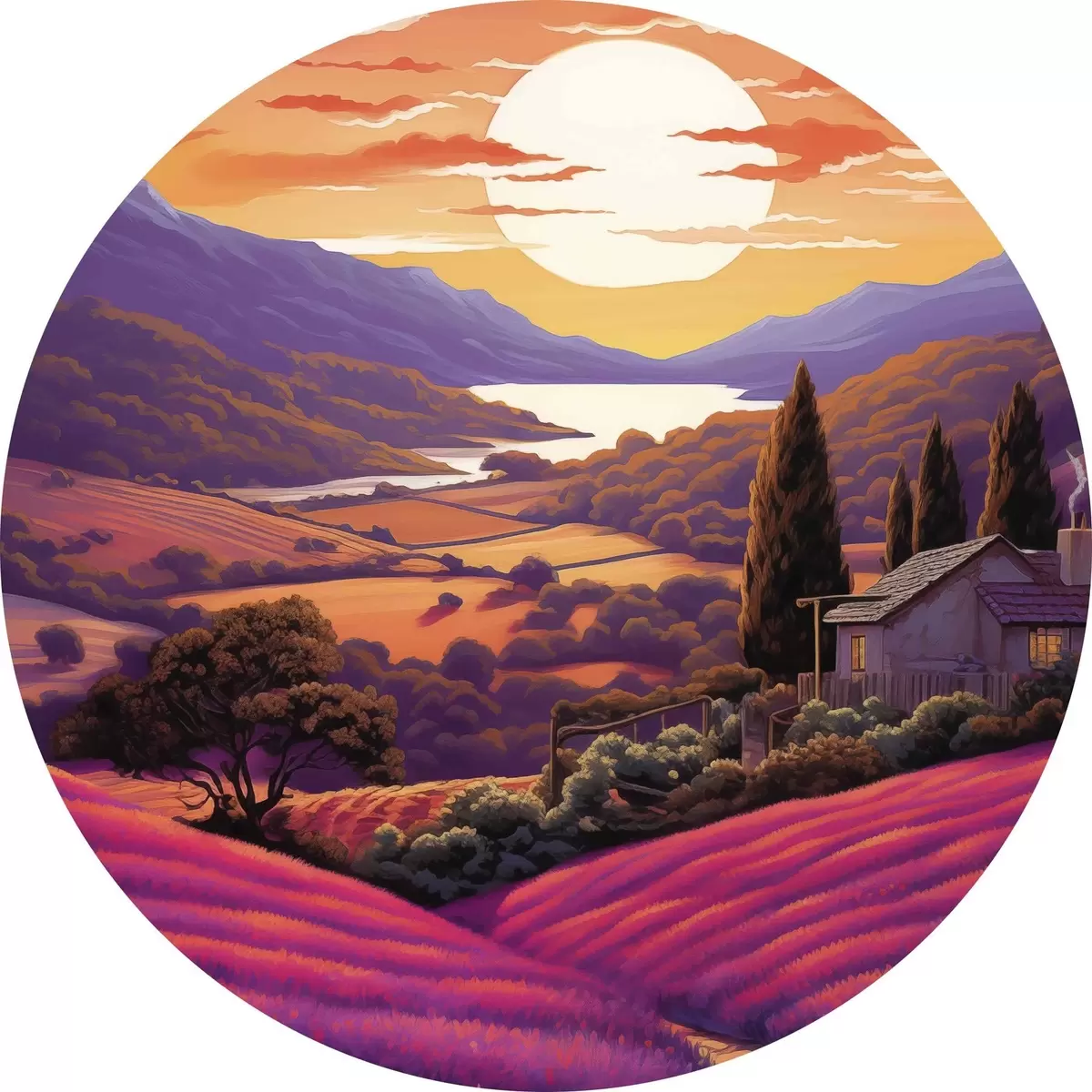 Attēls Lavandu lauki, saulriets, skaistas ainavas, kalni Nr r40943