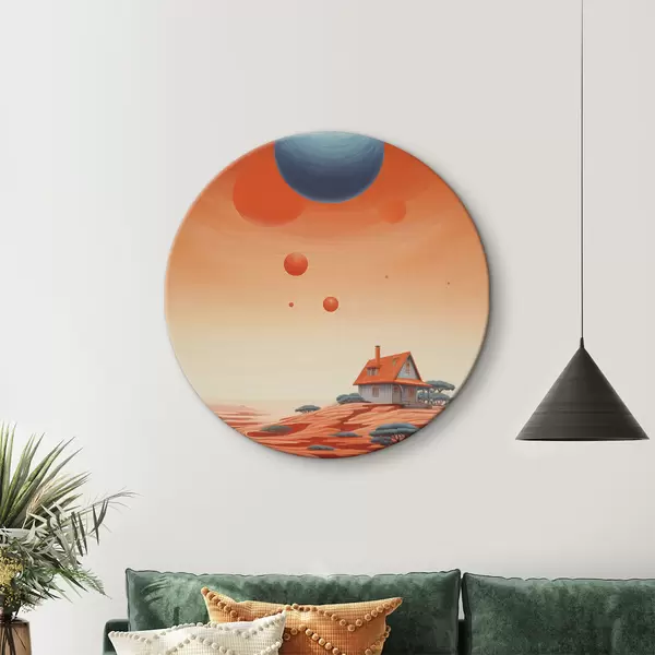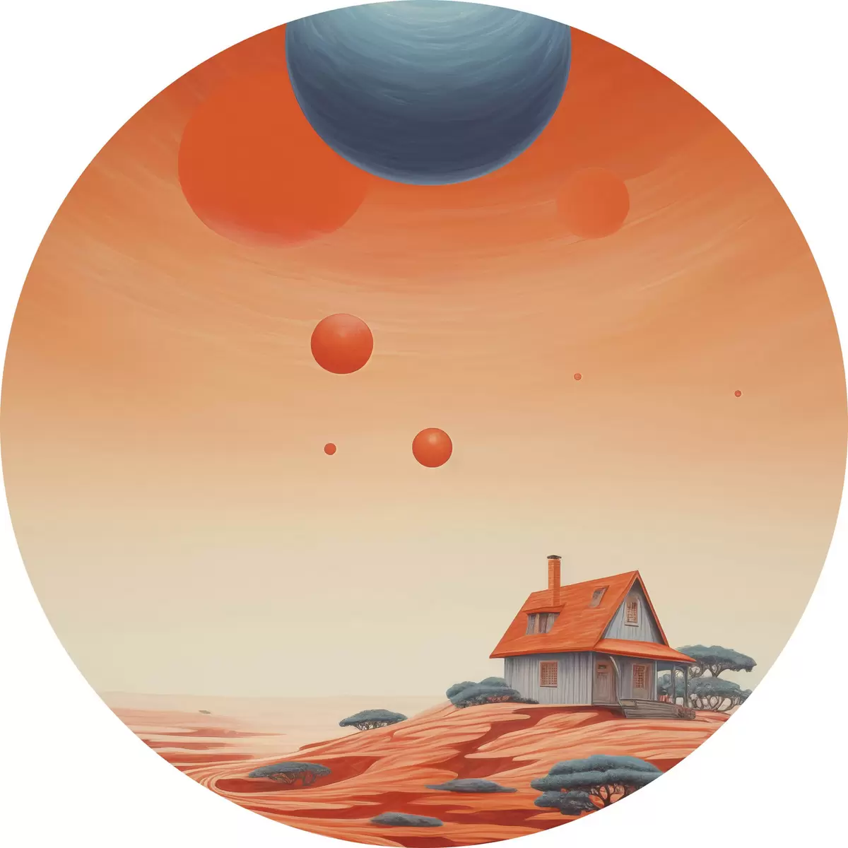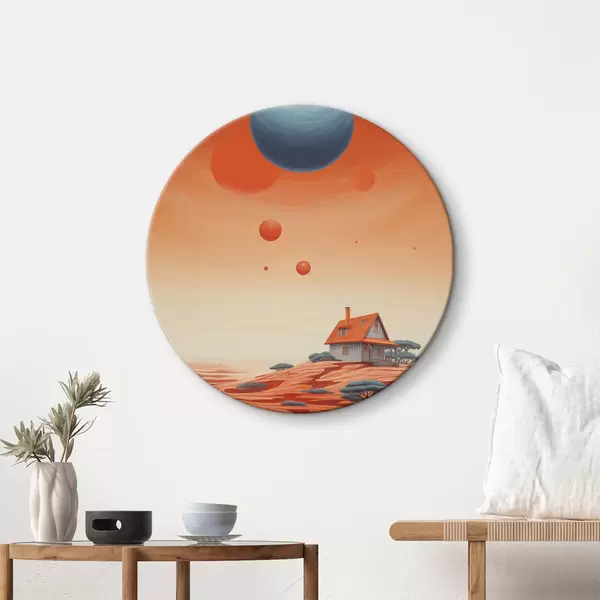 Attēls Tuksnesis ar māju, futūristiskā māksla, kosmoss, planēta Nr r40944