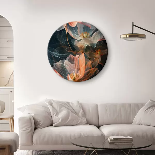 Attēls Spilgtas, caurspīdīgas puķes dūmos uz tumša fona Nr r40968