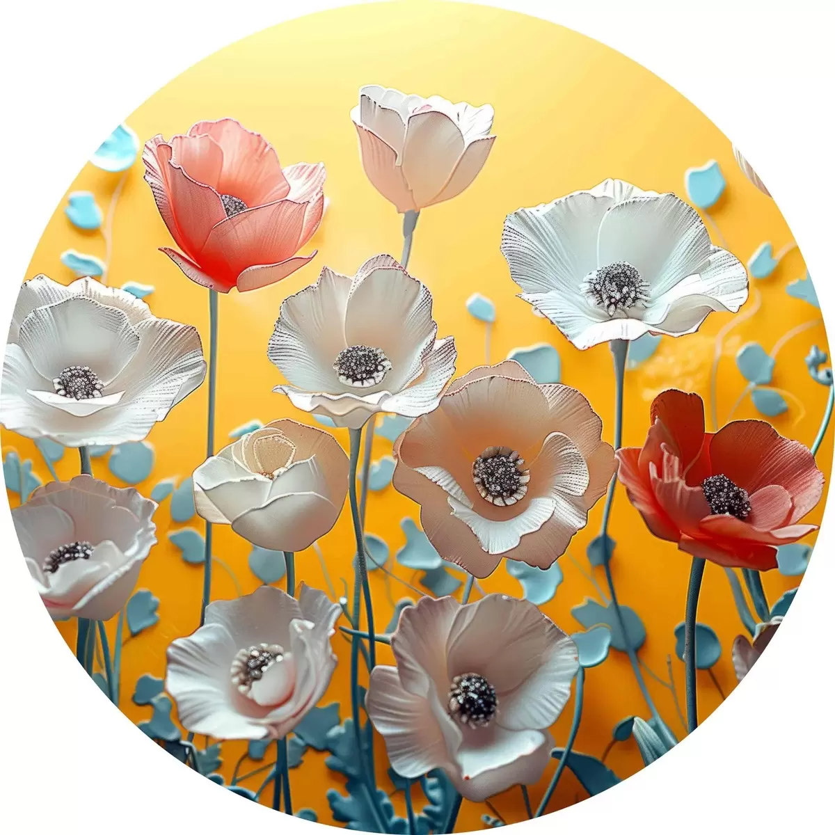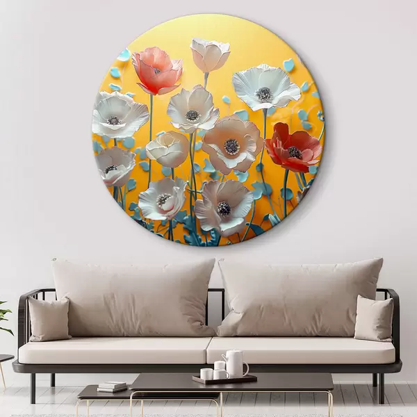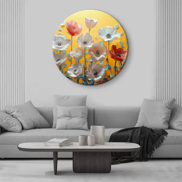 Attēls Baltas un sarkanas peonijas uz dzeltena fona Nr r40975