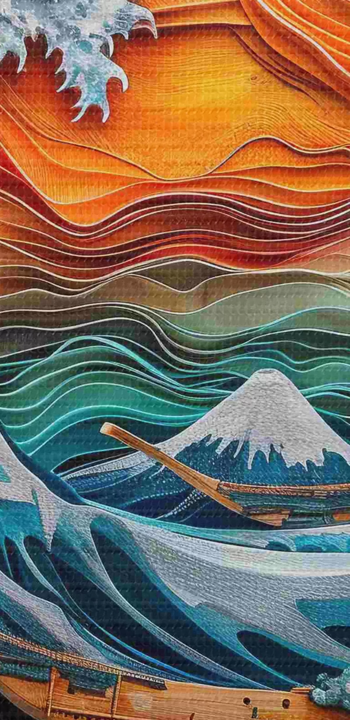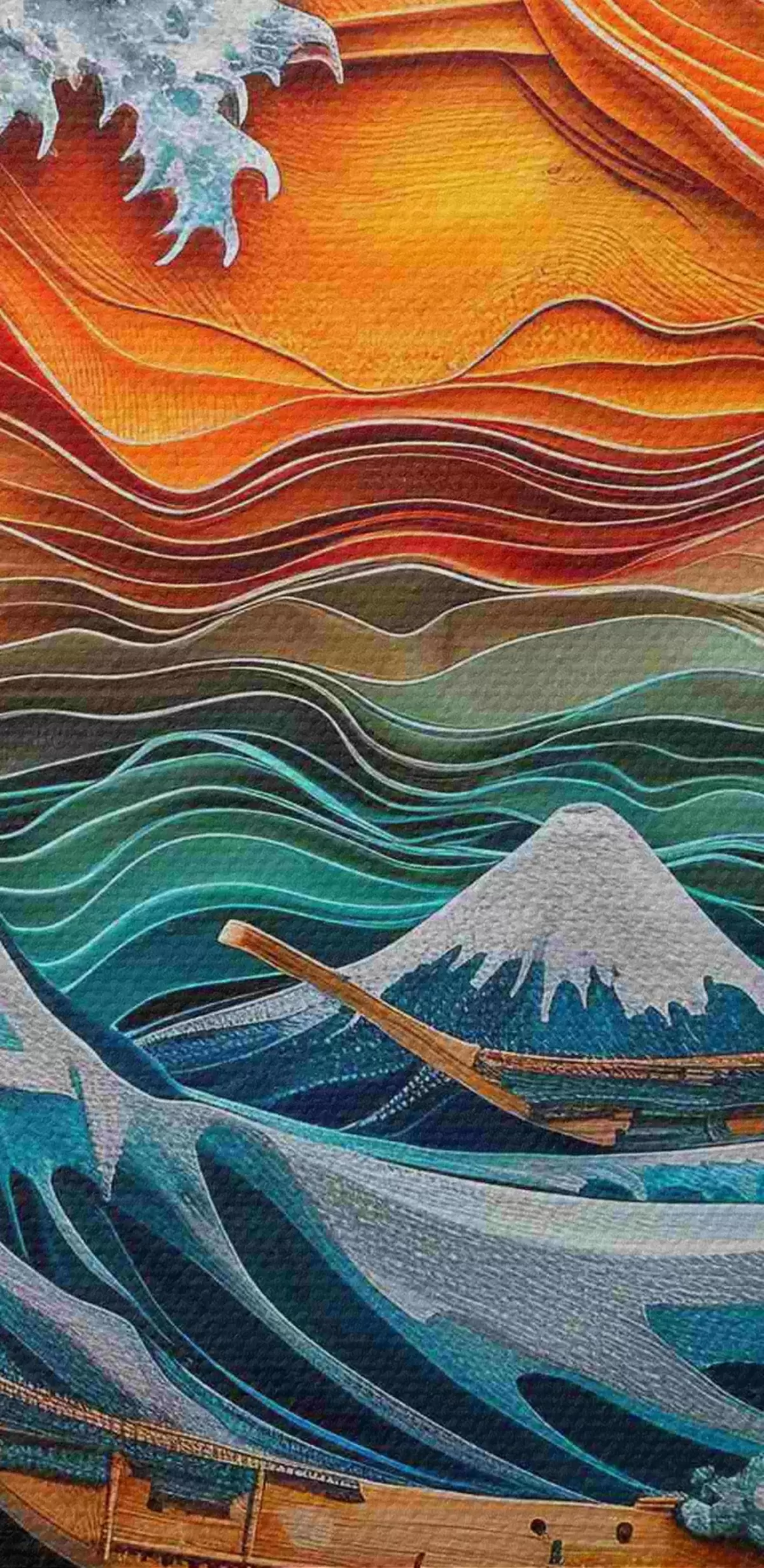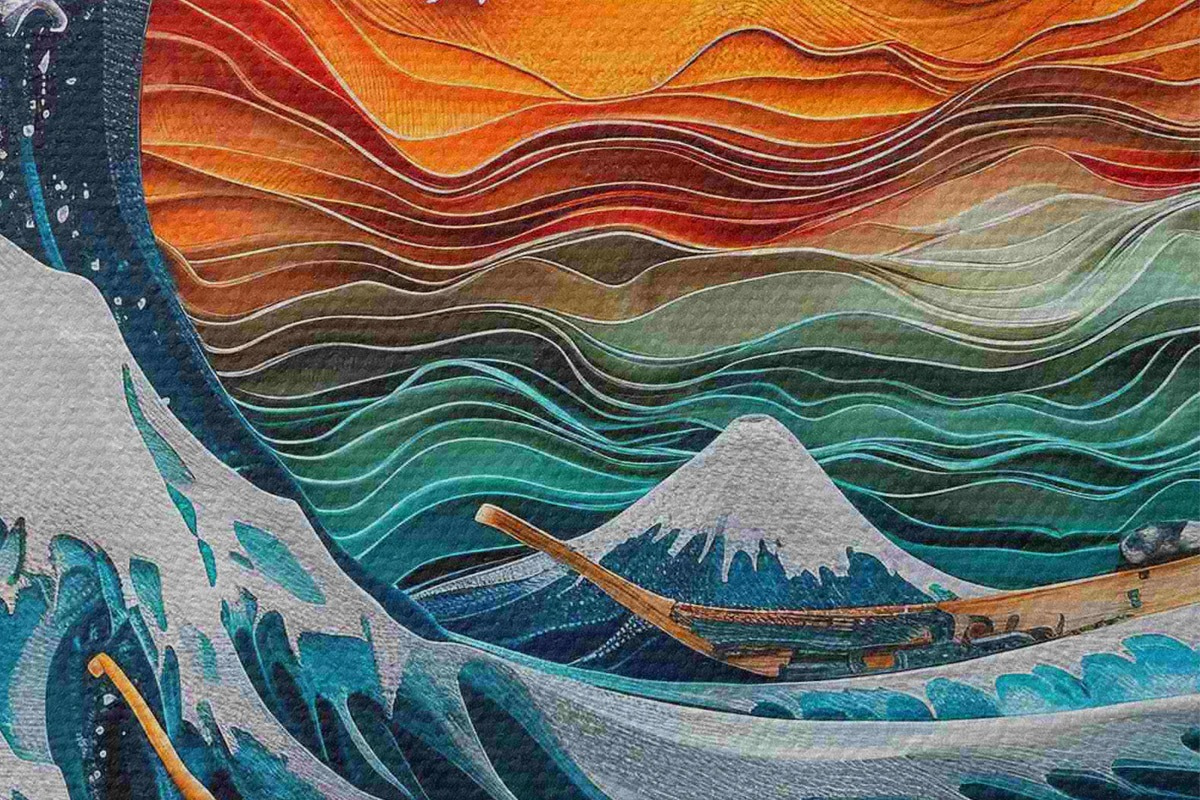 Attēls Bazreljefa imitācija: plosošs okeāns ar laivām un sauli Nr r40976