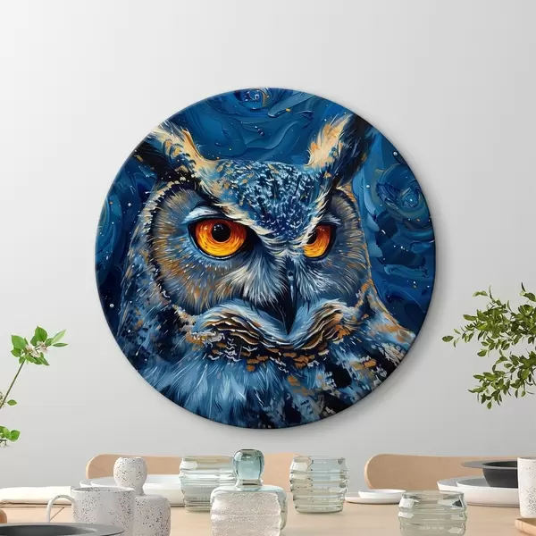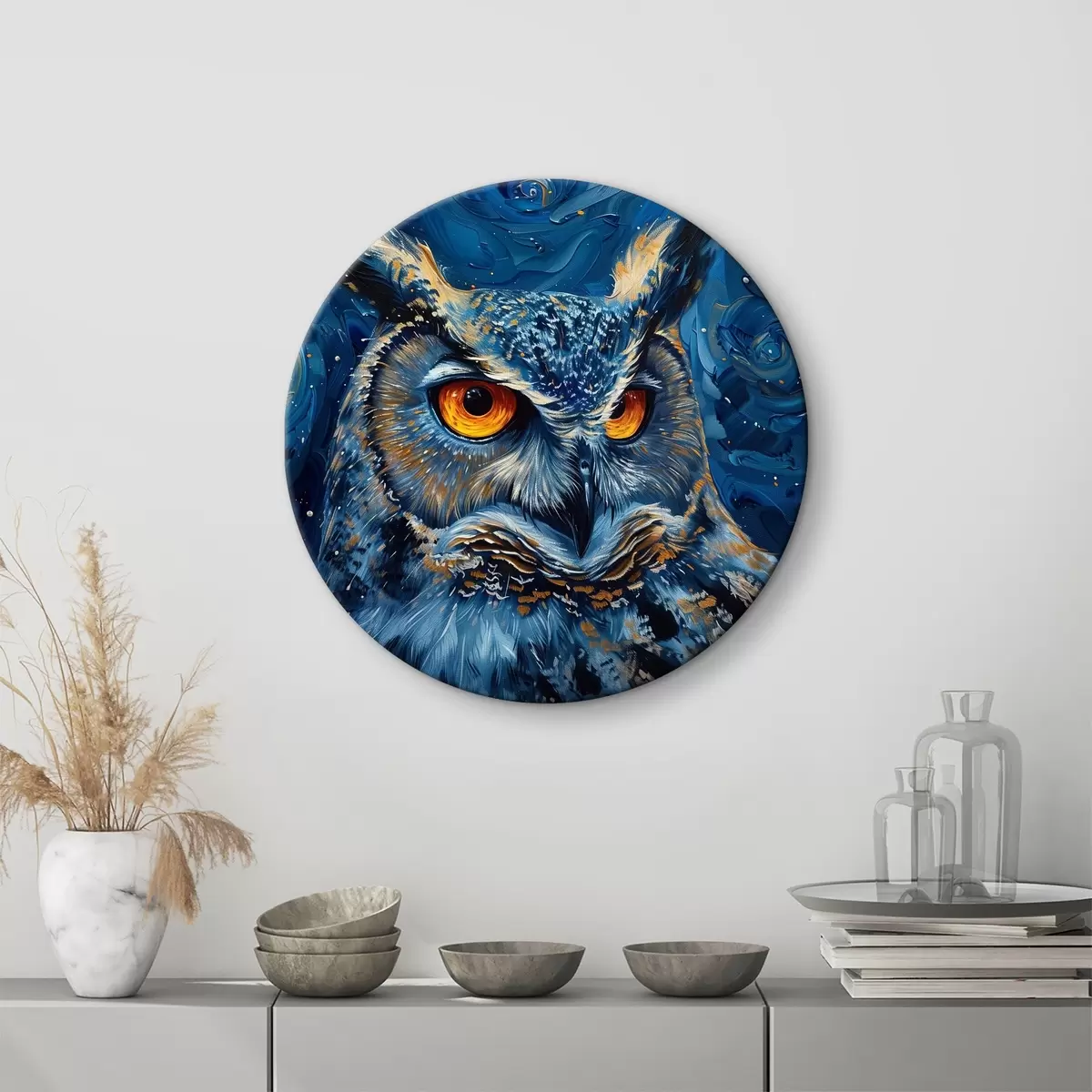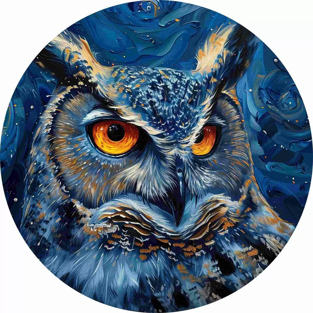 Apaļas gleznas Pūces nakts skatiens pret debesīm Van Goga stilā r40982