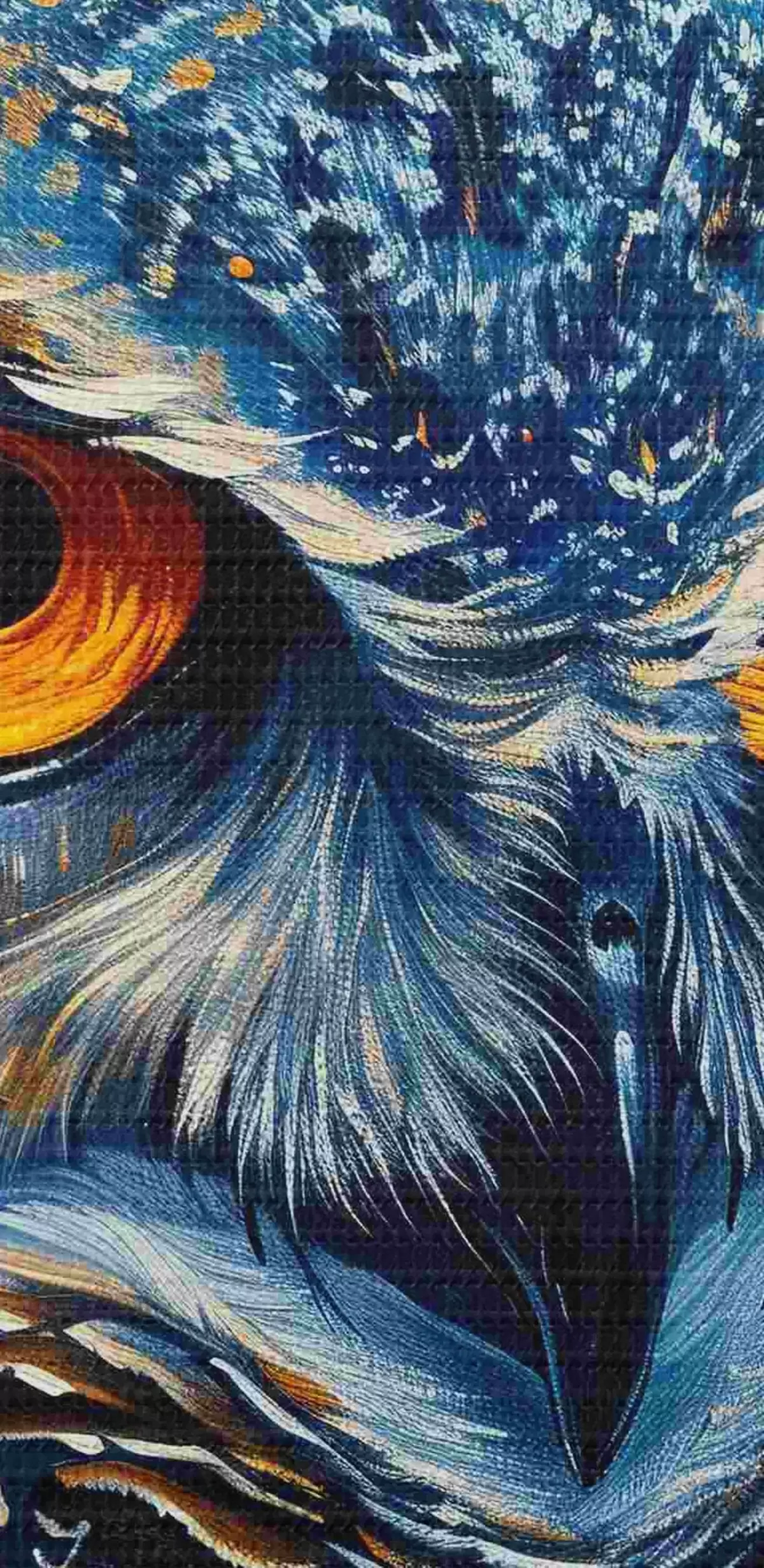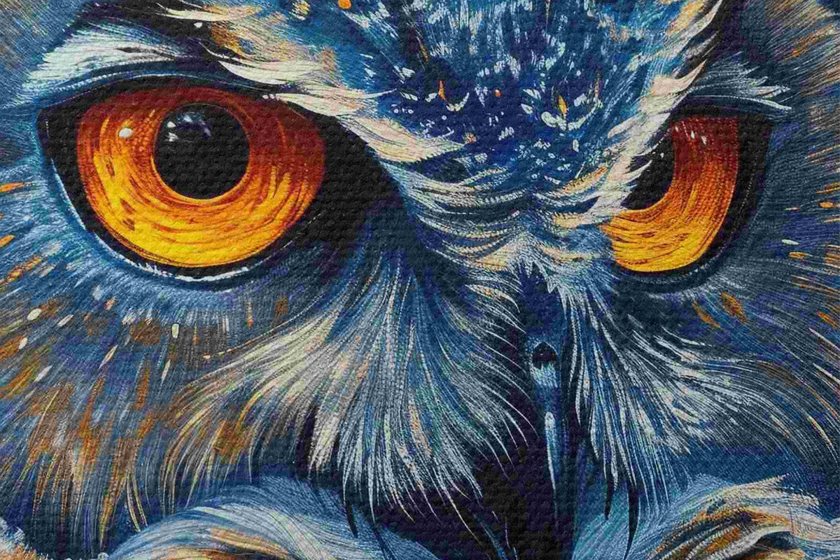 Smalkais diegu pinums uz šī audekla atgādina profesionālu mākslinieku audeklu virsmu.