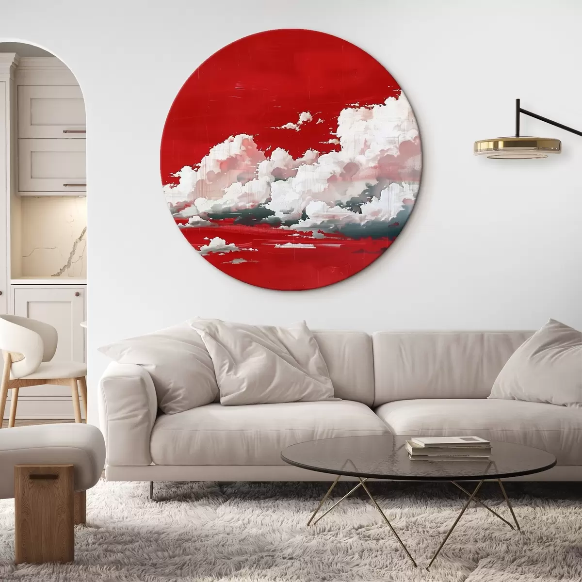 Apaļas gleznas Vētras mākoņi uz sarkana fona r40987