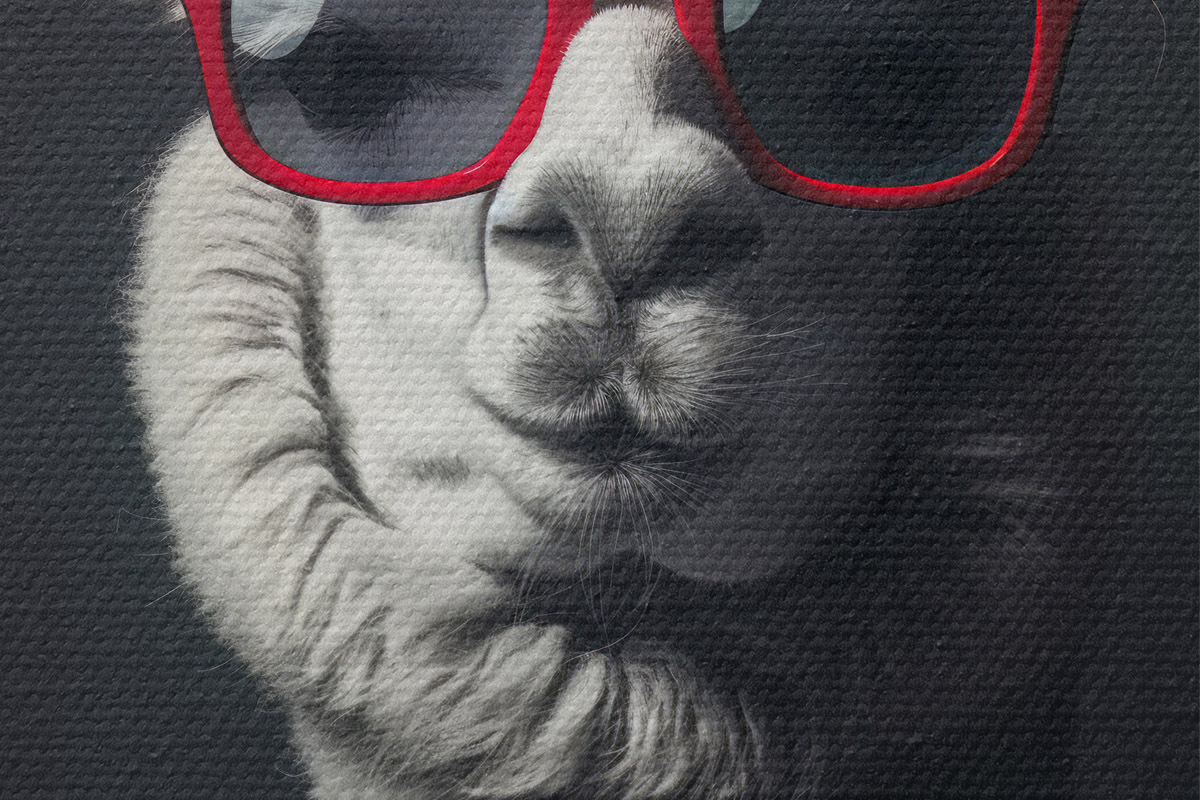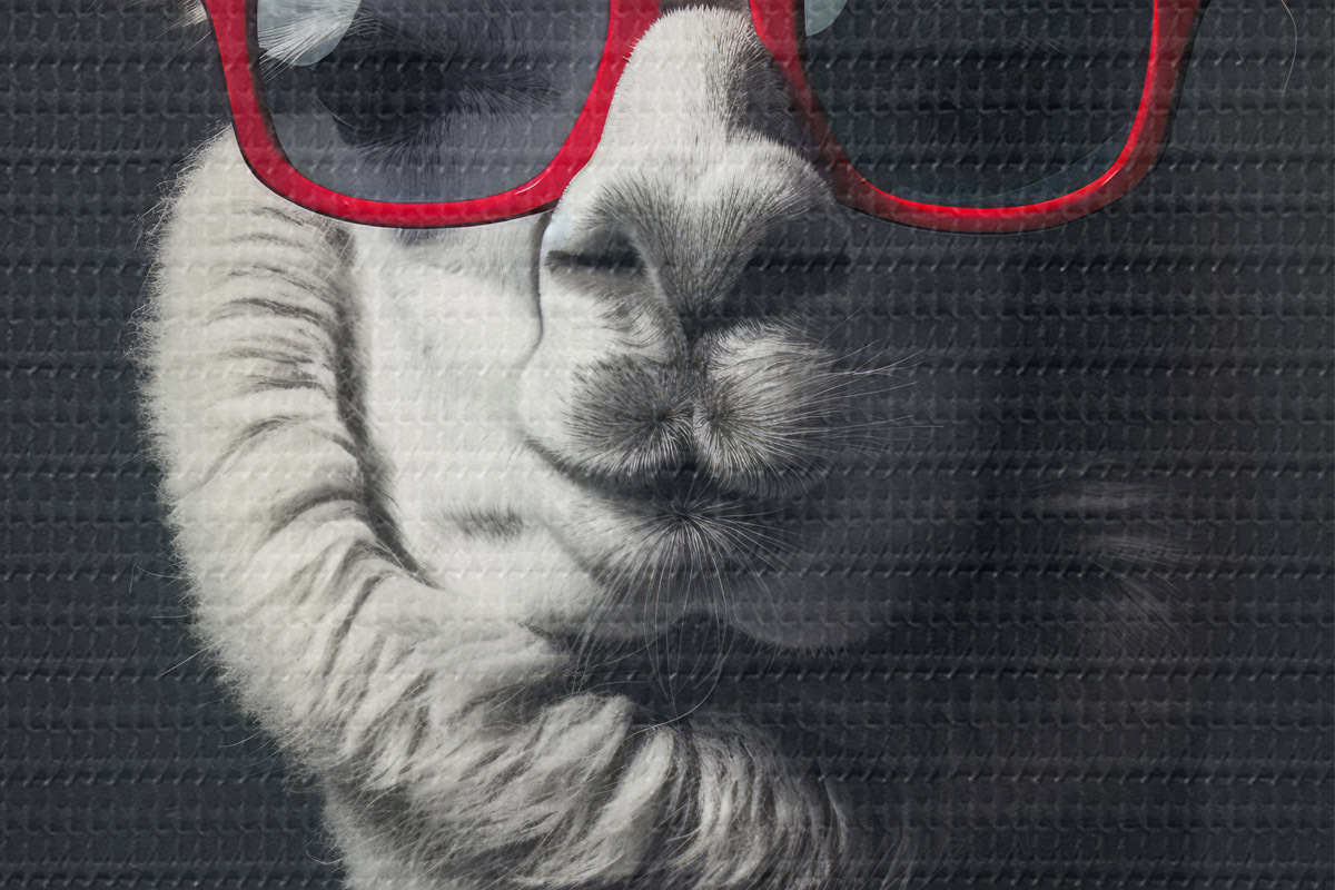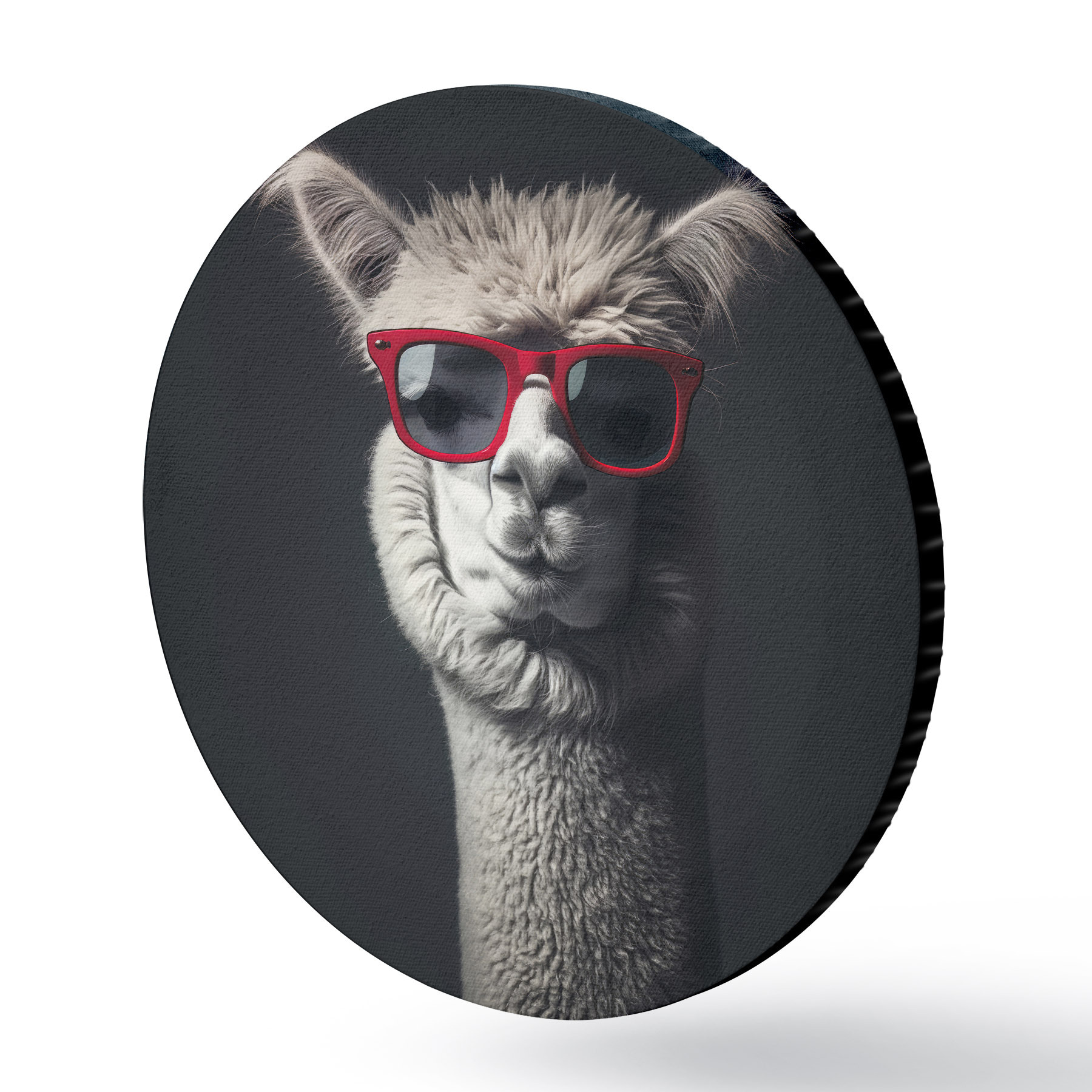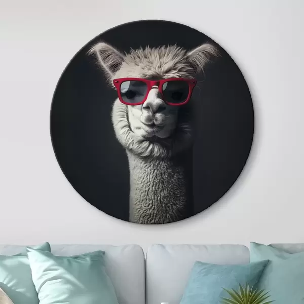 Apaļas gleznas Pelēka lama ar sarkanām brillēm r40996