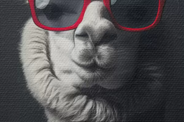 Attēls Pelēka lama ar sarkanām brillēm Nr r40996