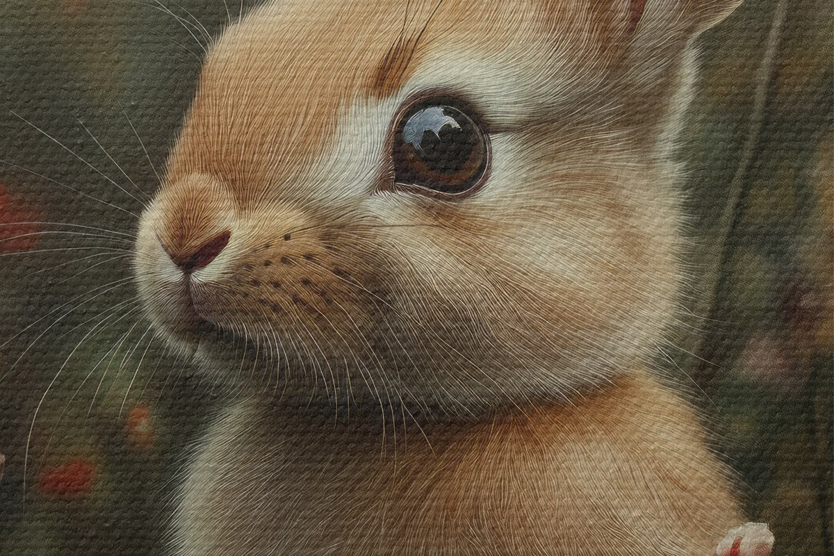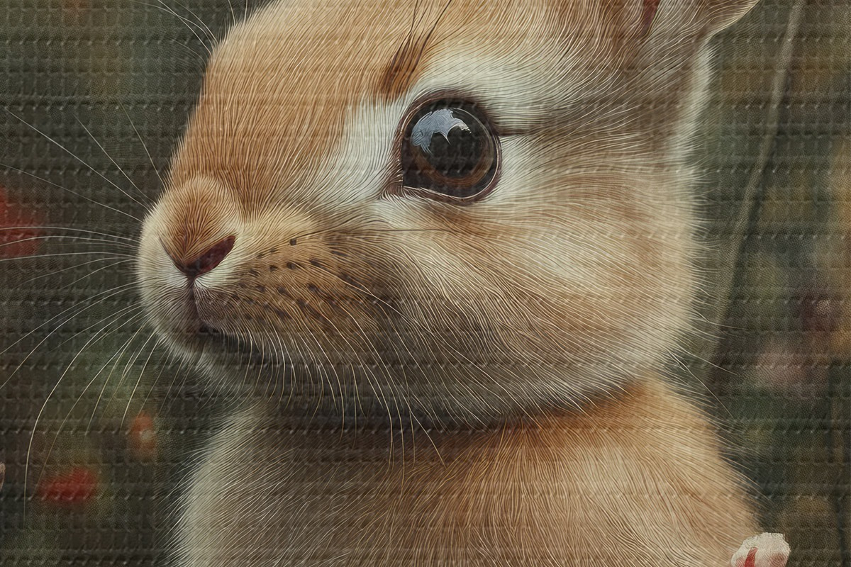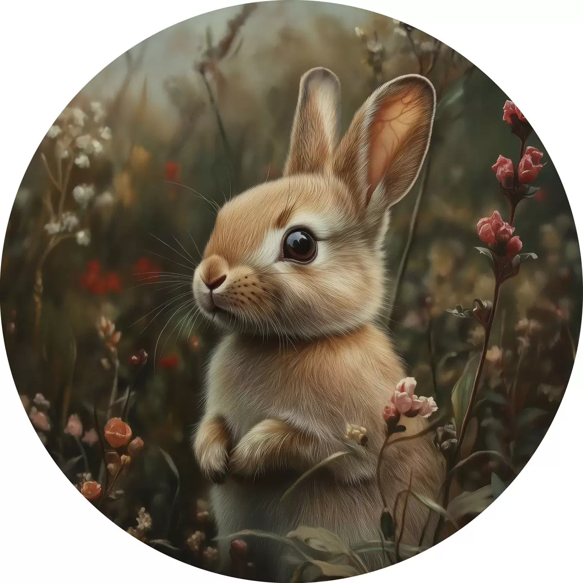 Attēls Gudrs zaķis savvaļas puķēs pasteļtoņos Nr r40998